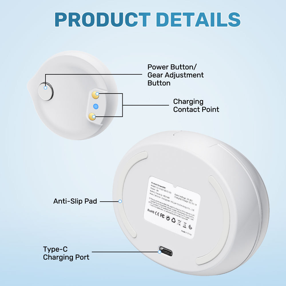 电池续航时长: 眼部/脸部零件使用 最大档就是 1-1.5h 左右(脉冲电流会有变化,只能预估),最低档可以2h左右