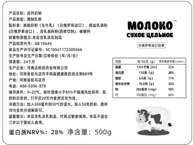 Импортированный молочный порошок из Беларуси, традиционный, с высоким содержанием кальция, без сахара, для людей среднего и пожилого возраста, студентов, подлинный
