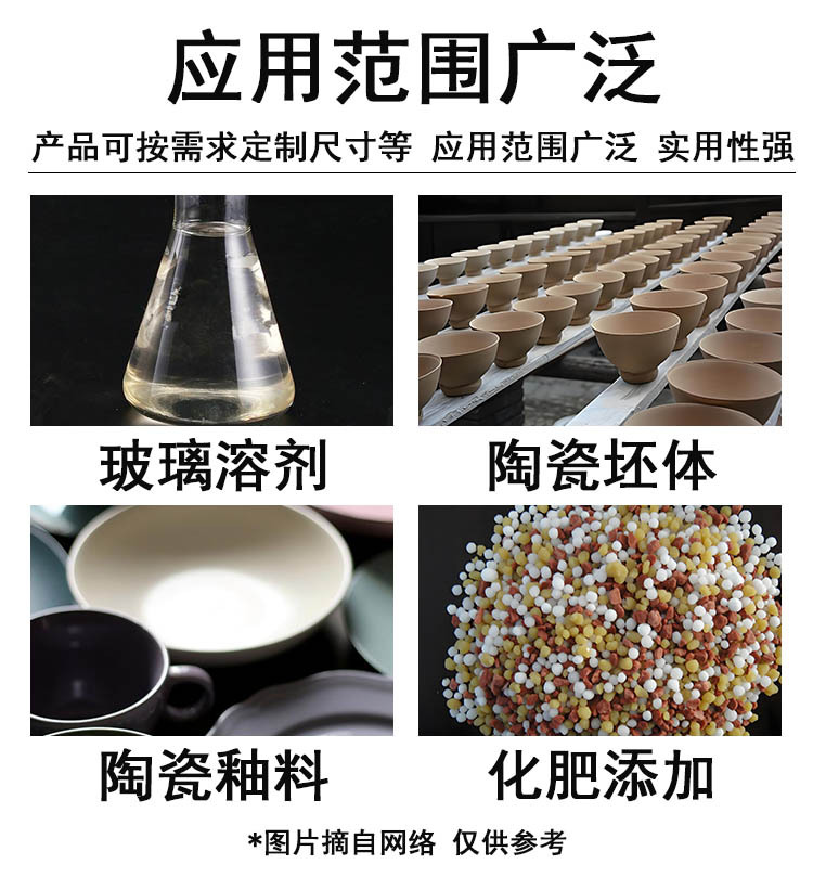 Применение Ceramic blanks, ceramic glazes, glass, electric porcelain grinding materials, etc