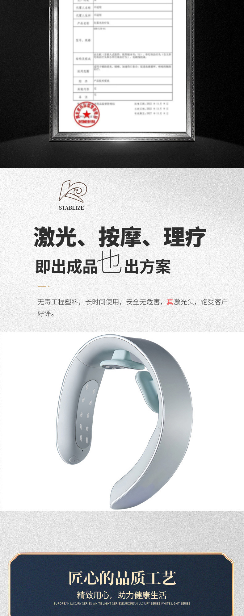 Лазерный массажер для шеи, фототерапия точек акупунктуры, физиотерапевтический прибор, 650 нанометров, импульсный