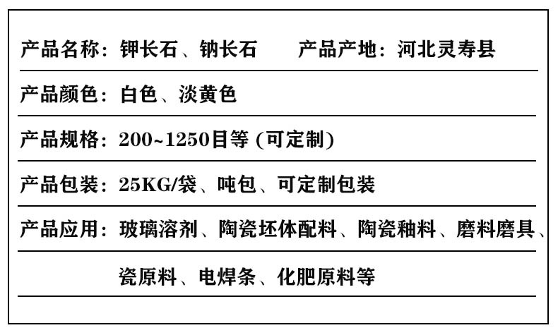 Тип Potassium feldspar powder, sodium feldspar powder, granules