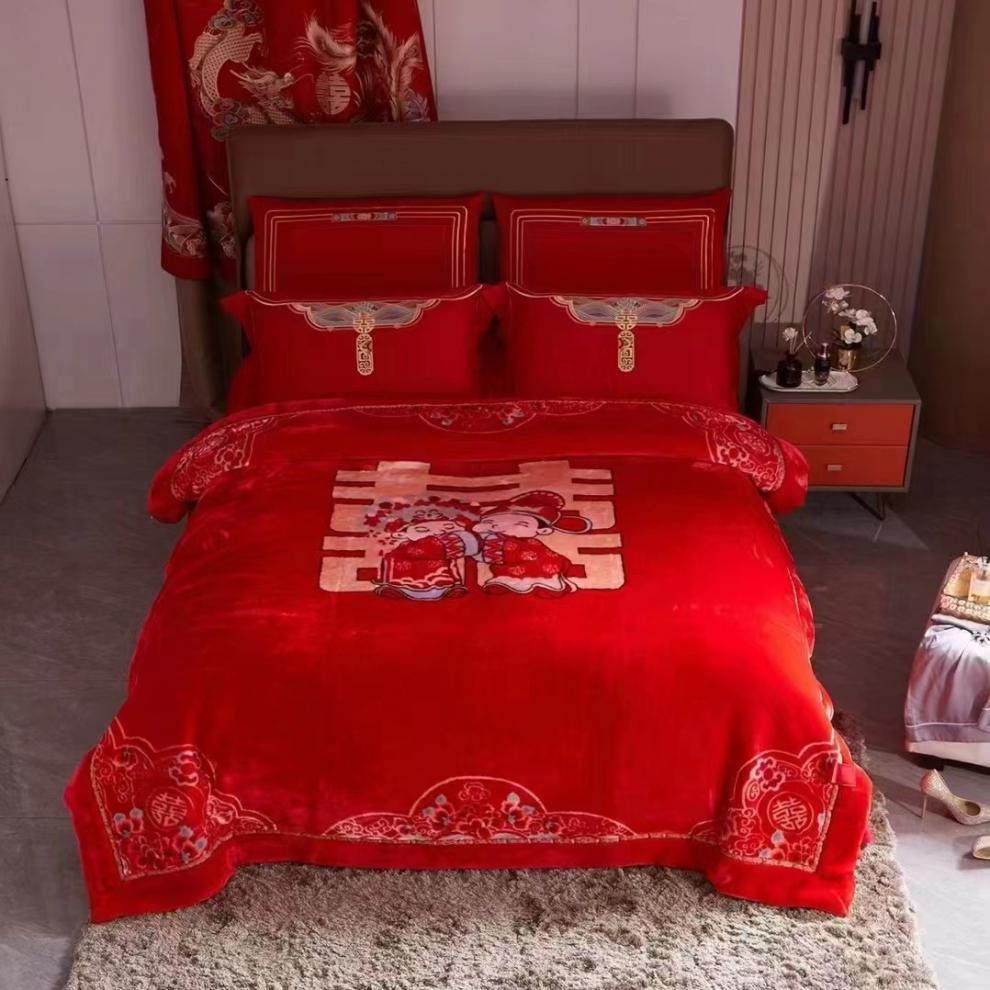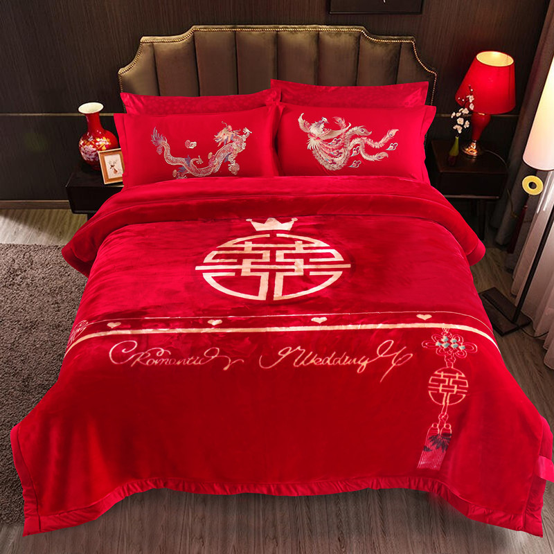 Плед для свадьбы, красный свадебный подарок, двуслойный утолщенный плед, осенний и зимний