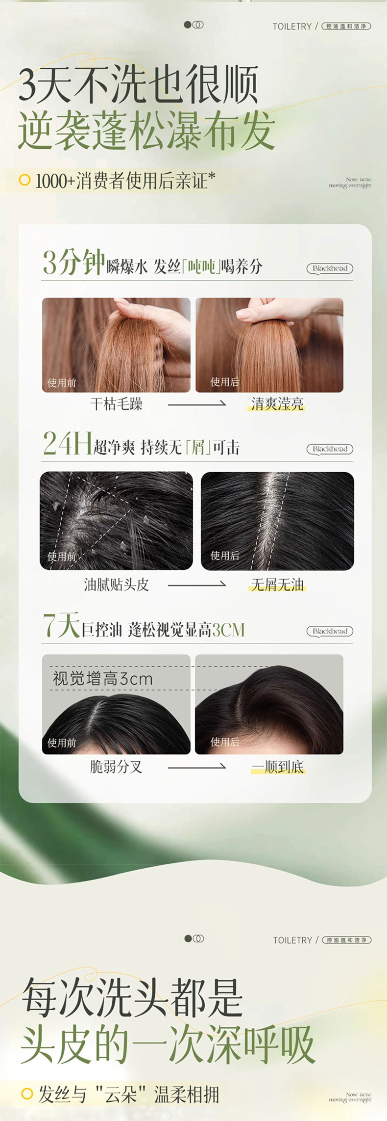 Эффект Oil control, fluffy, dandruff-free, soft and smooth