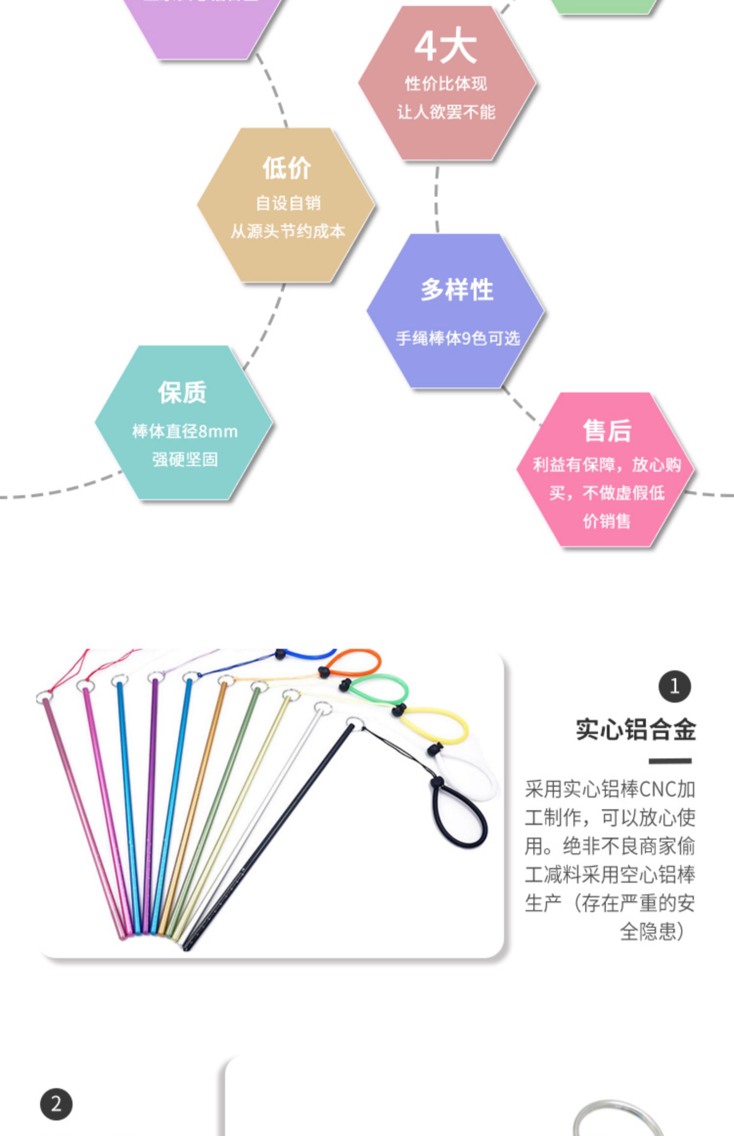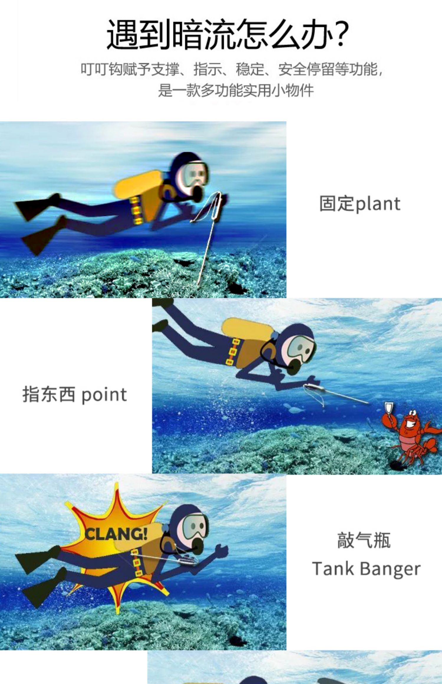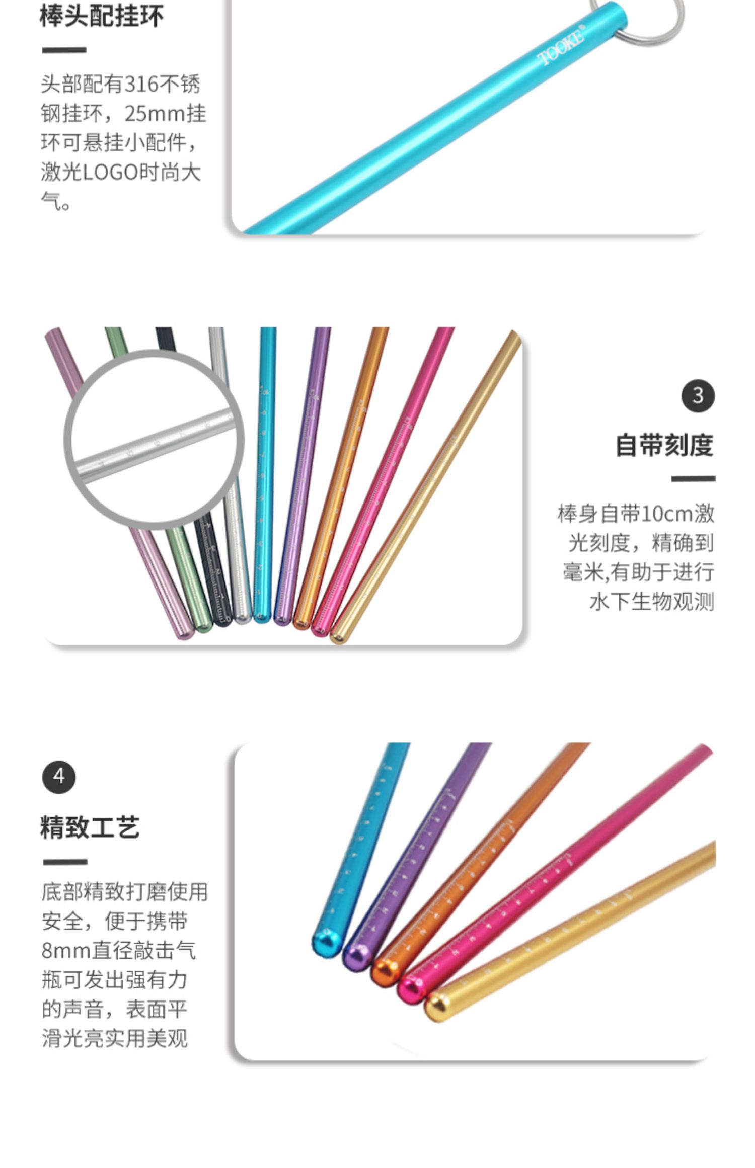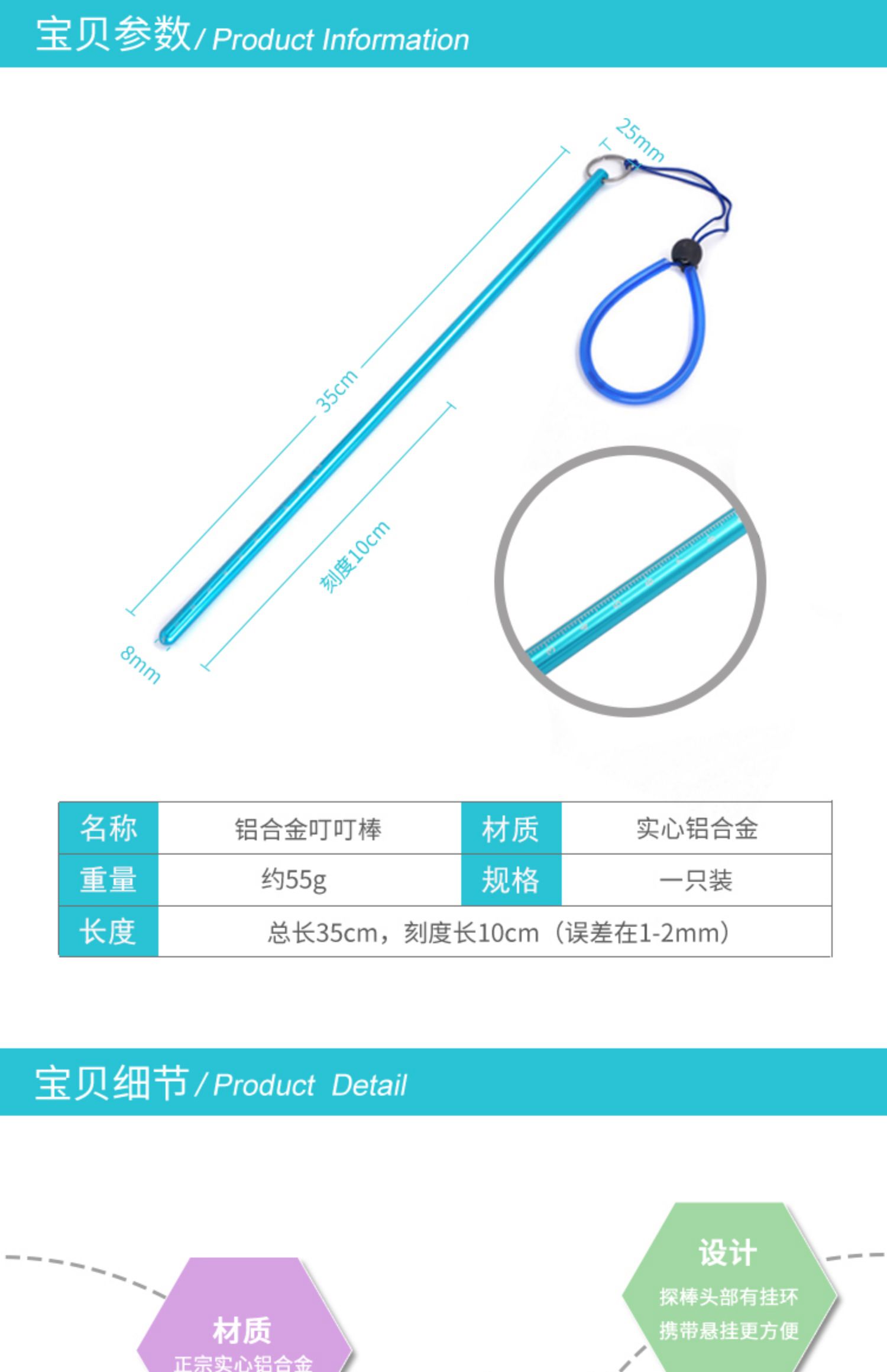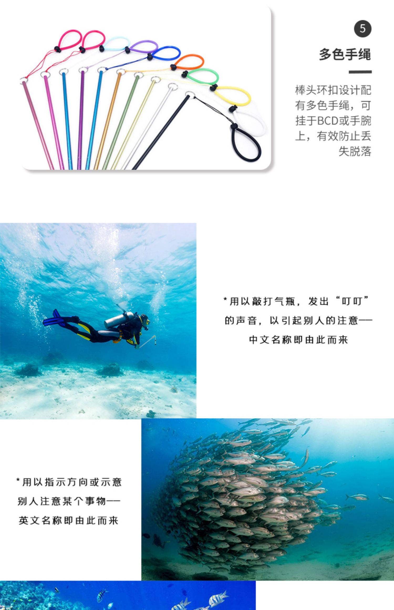 Теплая цена Дайвинг Дин Дин палка Цветной подводный зонд Удар по бутылке Сплошной алюминиевый сплав Антикоррозийный Не полый