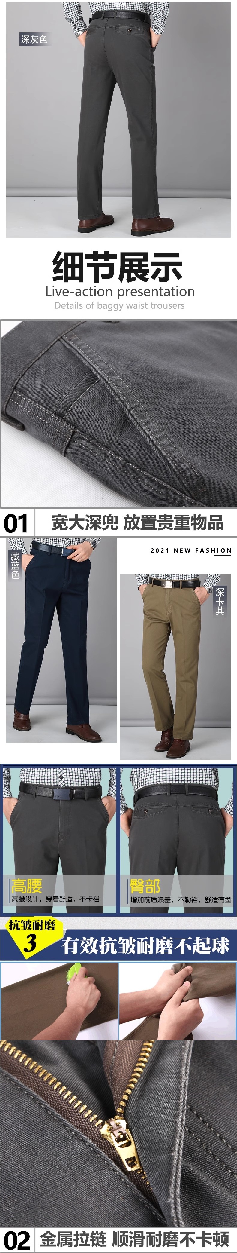 Удобные брюки для мужчин среднего возраста весна-осень, толстые повседневные брюки, летние тонкие брюки на высокой талии для мужчин среднего и пожилого возраста