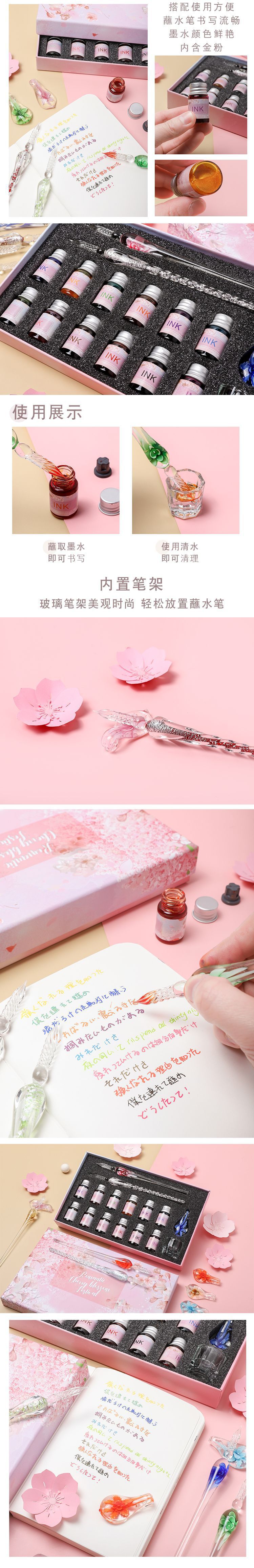 Стеклянная ручка, макет с водой, чернильное перо цвета сакуры, набор подарков для студентов