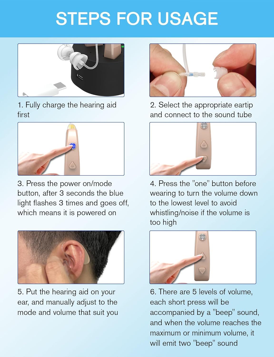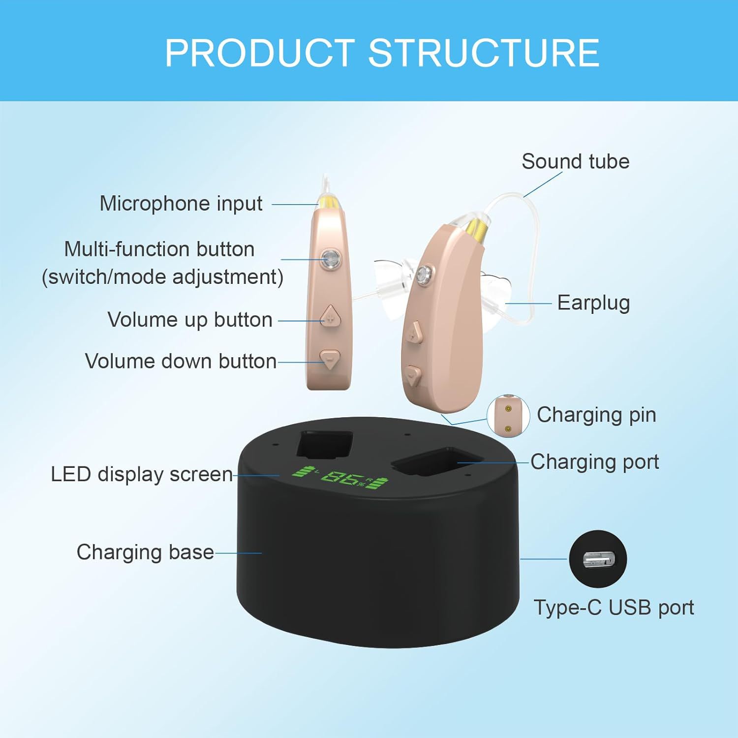 Кросс-бордерные слуховые аппараты за ухом для пожилых с цифровым дисплеем, USB зарядка, усилитель звука
