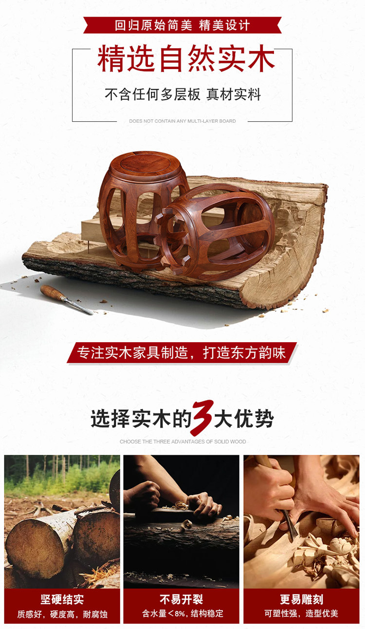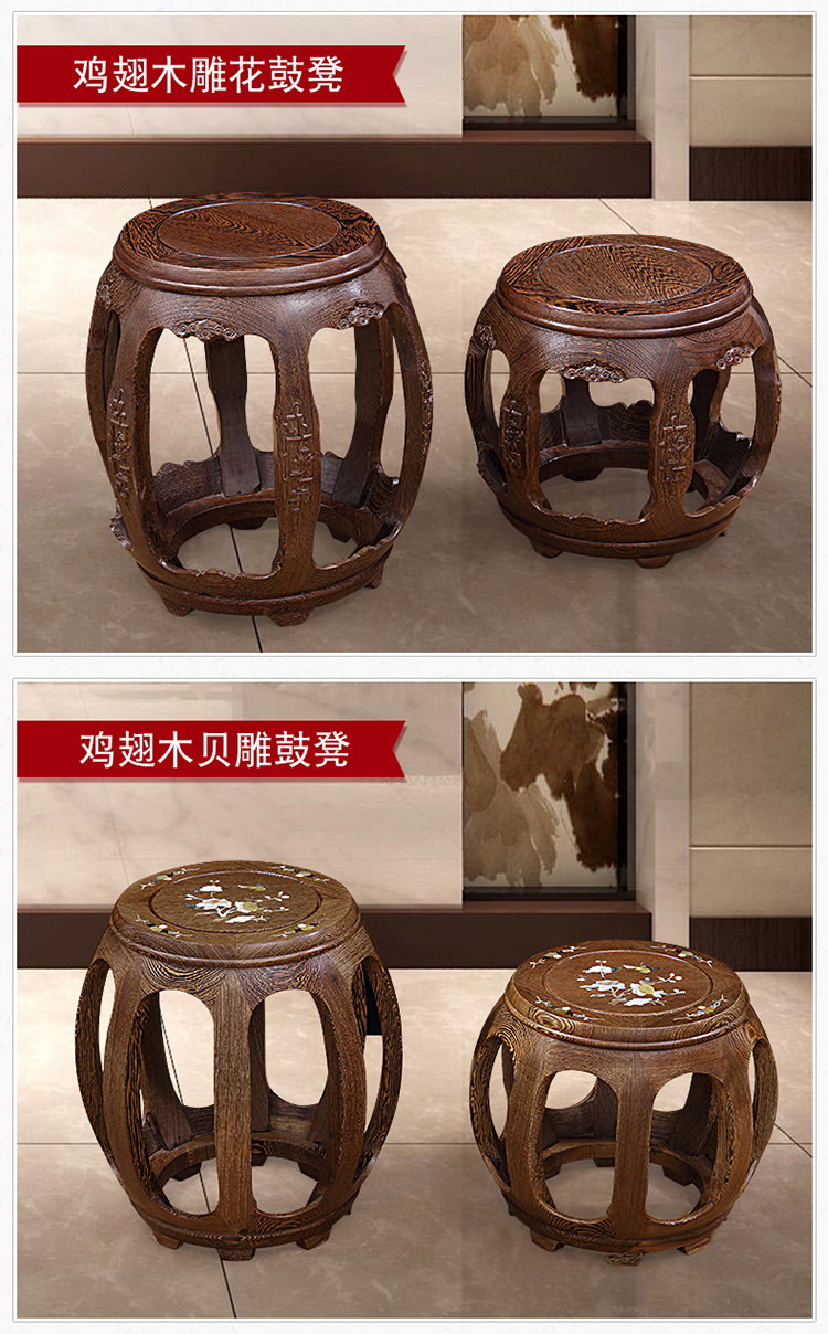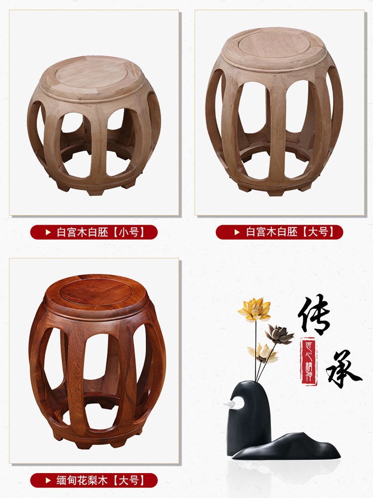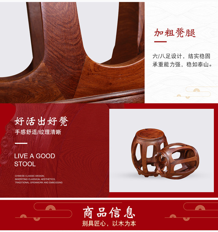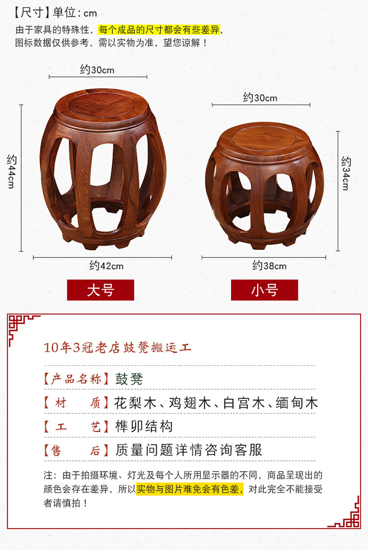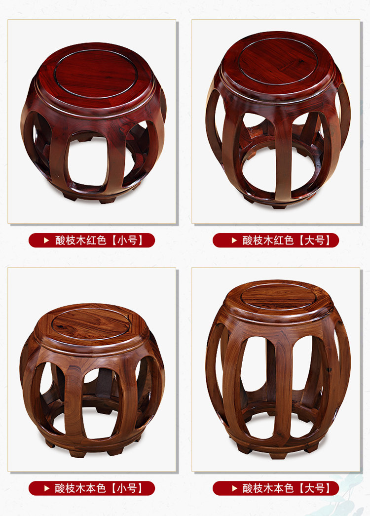 Табурет из красного дерева, круглый барабанный табурет, новый китайский стиль, антикварный табурет, табурет с вышивкой