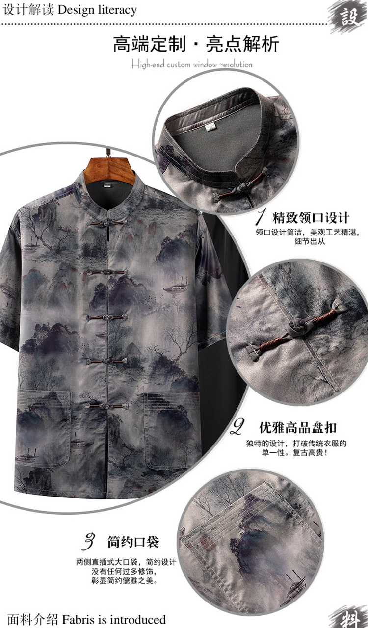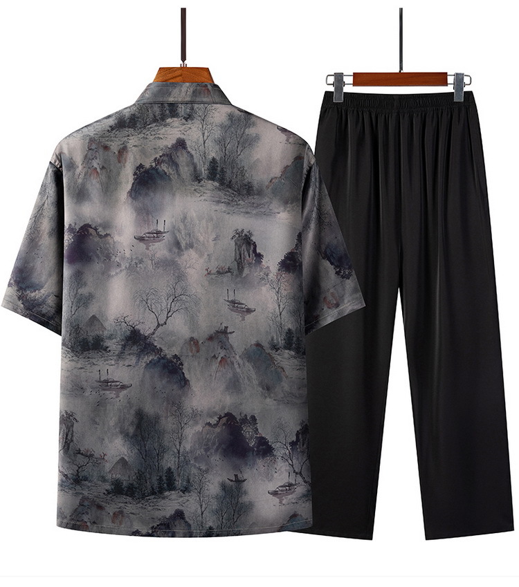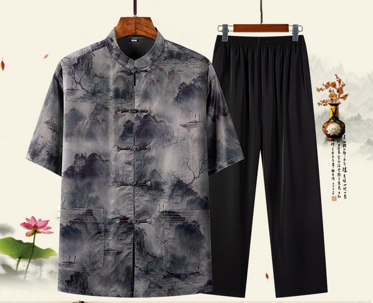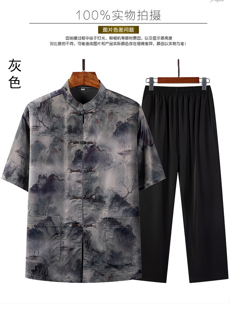 Костюм тан для мужчин среднего и пожилого возраста, летний, короткий рукав, для дедушки, китайский стиль, одежда для пожилых