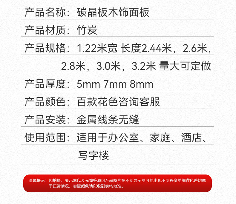 Карбон-кристаллическая панель, панель из бамбукового угля, огнестойкая, быстрая установка, бесшовная панель для стен