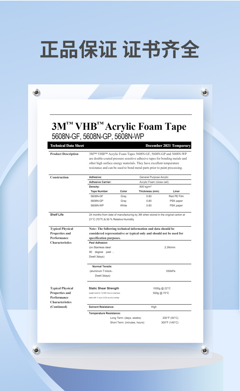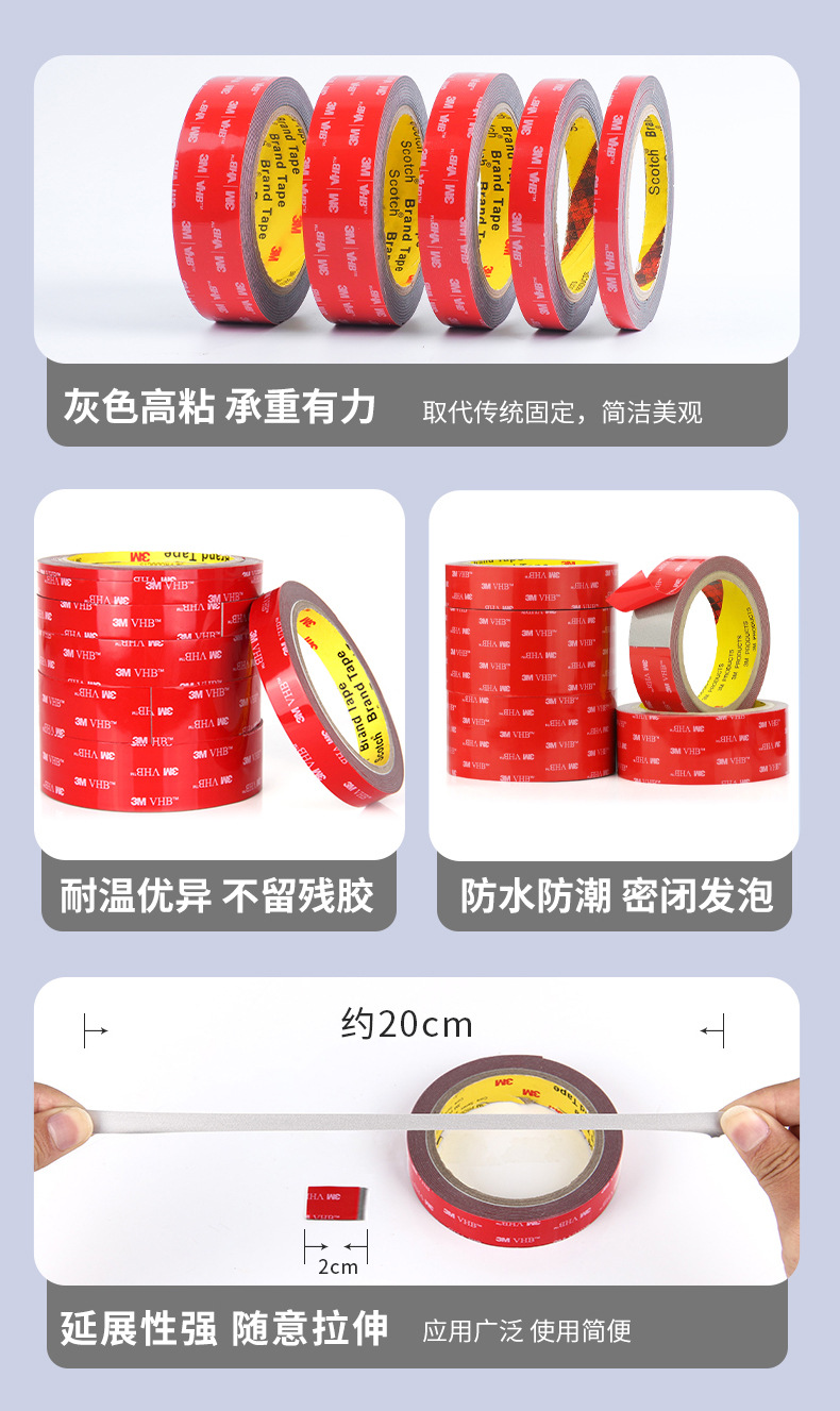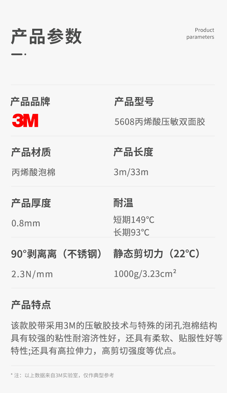 3m双面胶 正品强力5608vhb泡棉胶带模切高粘度耐高温无痕3m双面胶