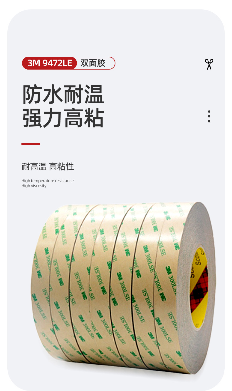 3m9472le双面胶 透明无基材300les胶带耐高温模切强粘性3m双面胶