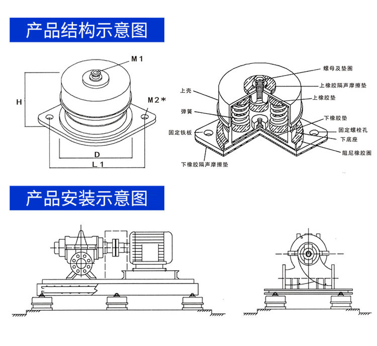 ZD型组尼弹簧减振器具有弹簧减振器的低频率和橡胶减振器的大组尼等双重优点,将两者的优点结合,消除了弹簧减振器共振时振幅激增的现象,又解决了橡胶减振器固有频率较高的难题,是积极、消极隔振的理想产品。