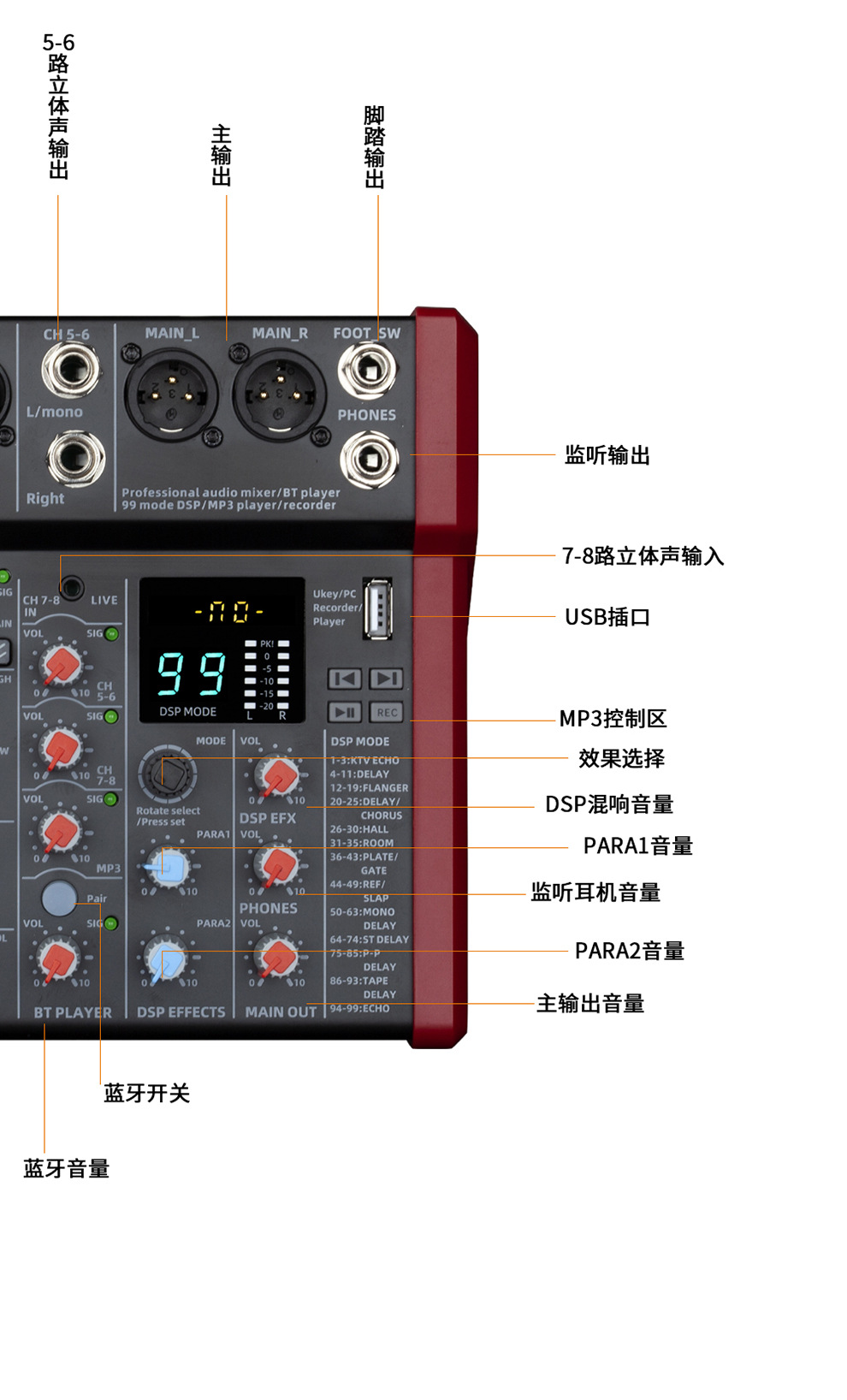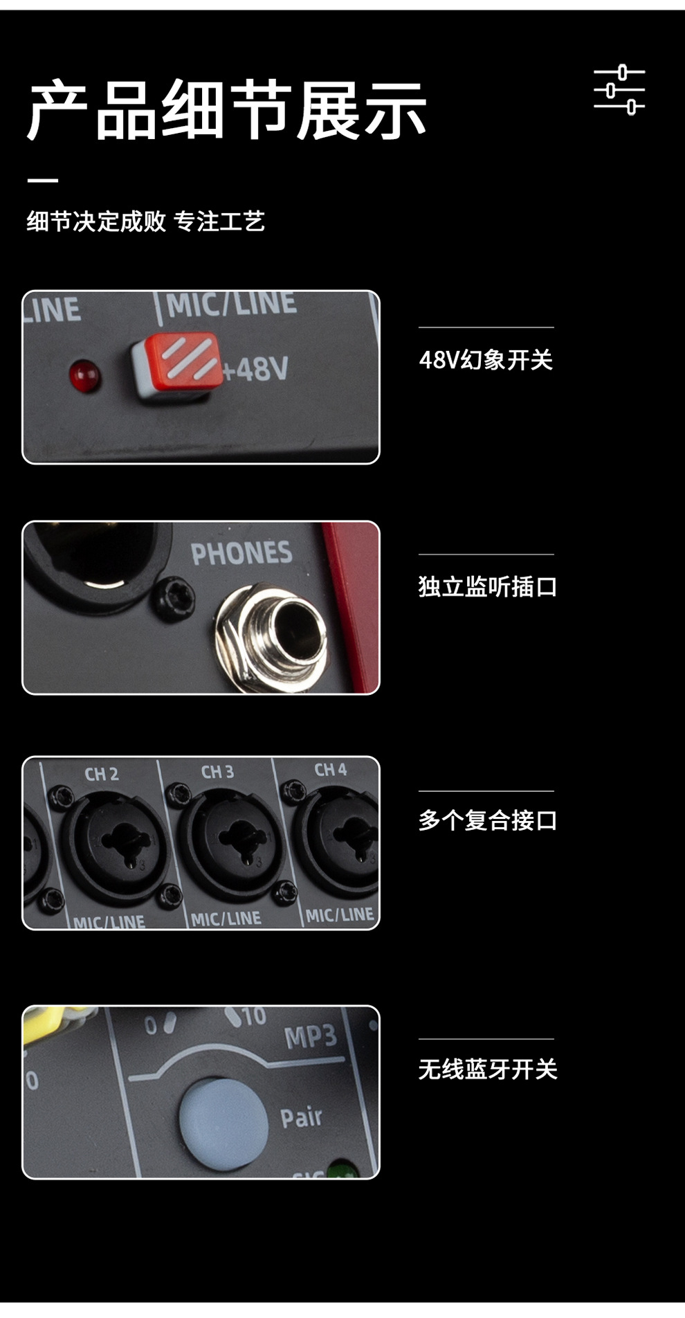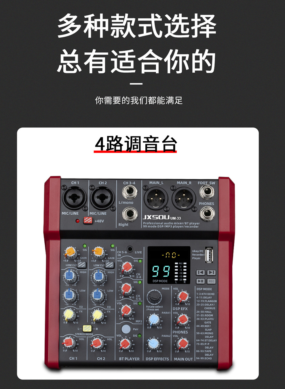 Караоке инструмент для пения, 4-канальный микшер, встроенный Bluetooth, эффект реверберации, малый домашний мини-рекордер