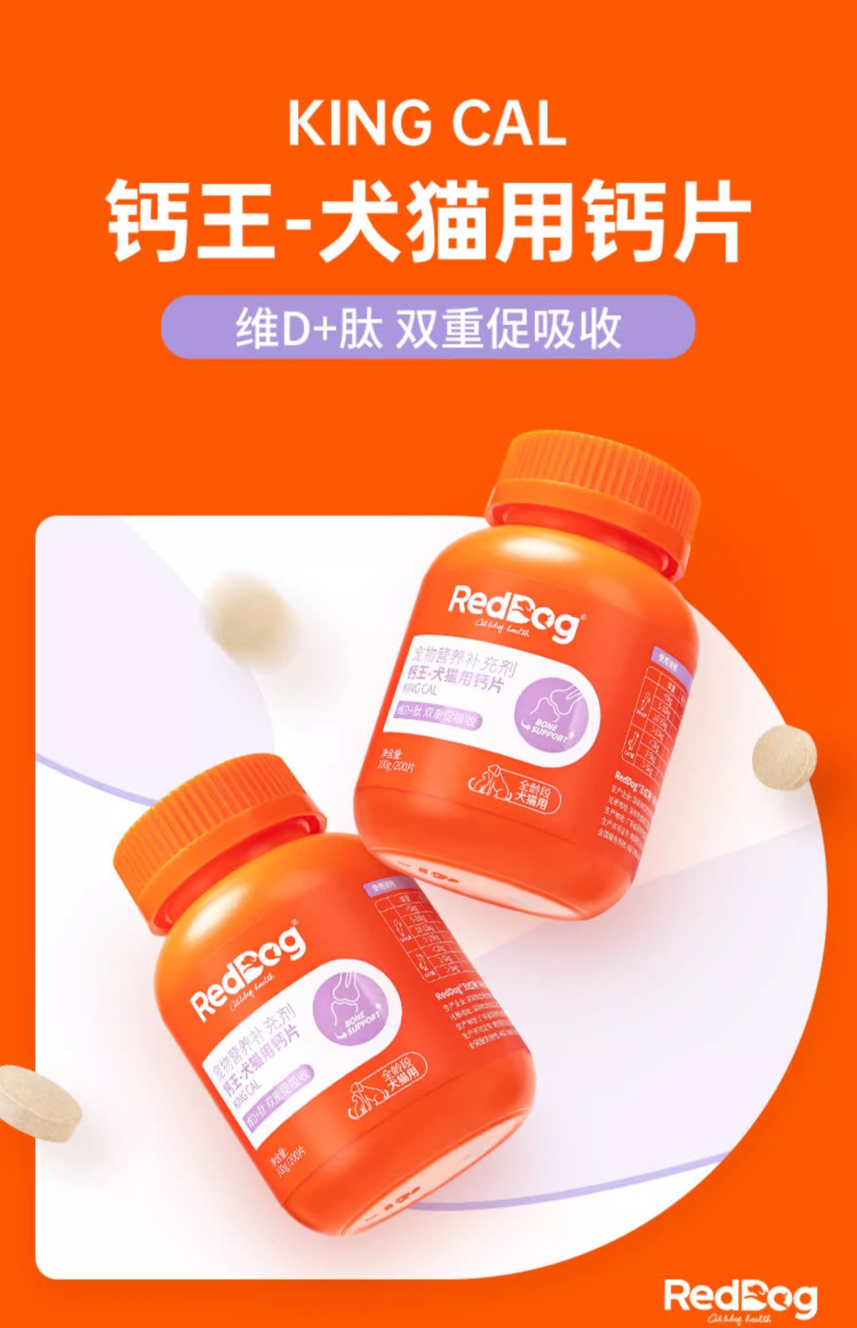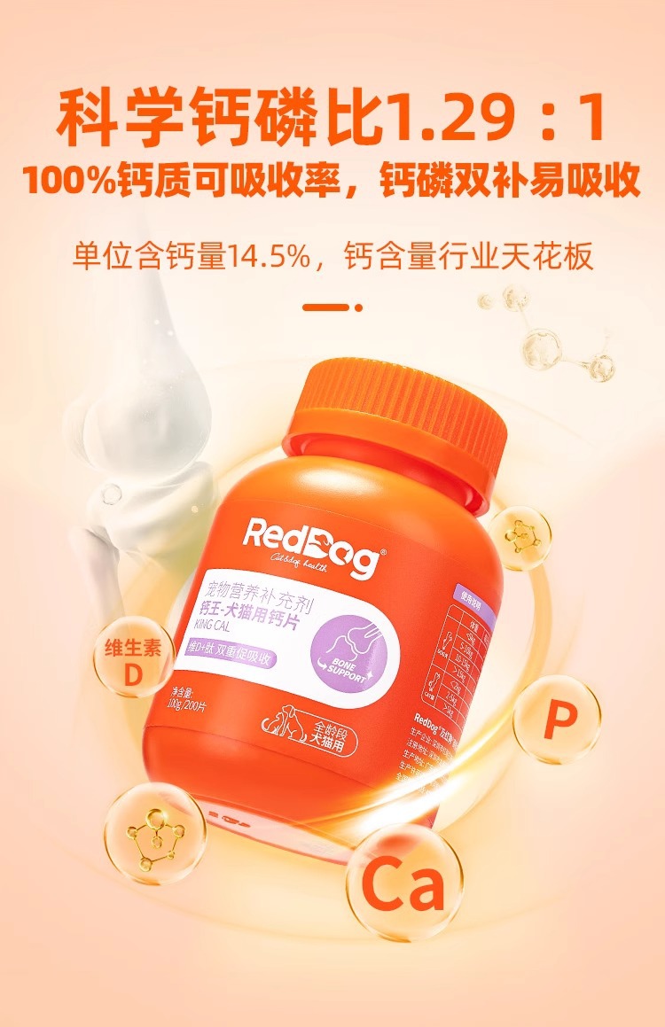 Кальциевые таблетки Red/Dog King для кошек и собак, укрепление костей, кальций для тедди и золотистых ретриверов, 100 г