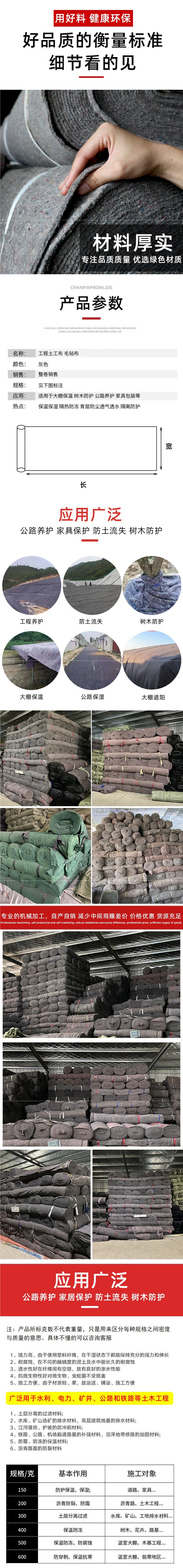 Геотекстиль Утепляющее одеяло Водоотталкивающая фетровая ткань Обслуживание цементного дорожного покрытия Одеяло Увлажняющая упаковка Упаковка мебели Одеяло