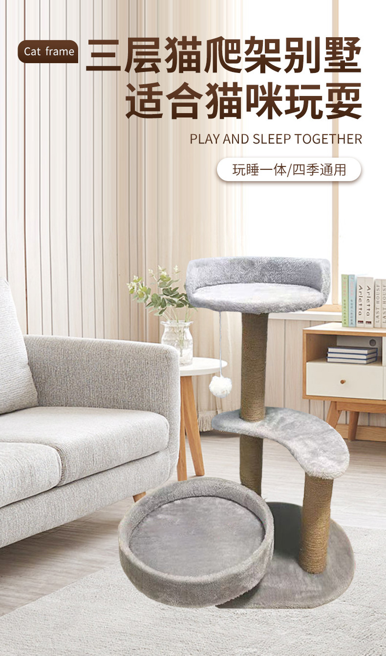 Трехуровневый кошачий вьюк, вилла, большой кошачий вьюк, домик для котов, кошачье дерево, интегрированное с платформой для прыжков, столб для царапания, доска для царапания, игрушка для котов