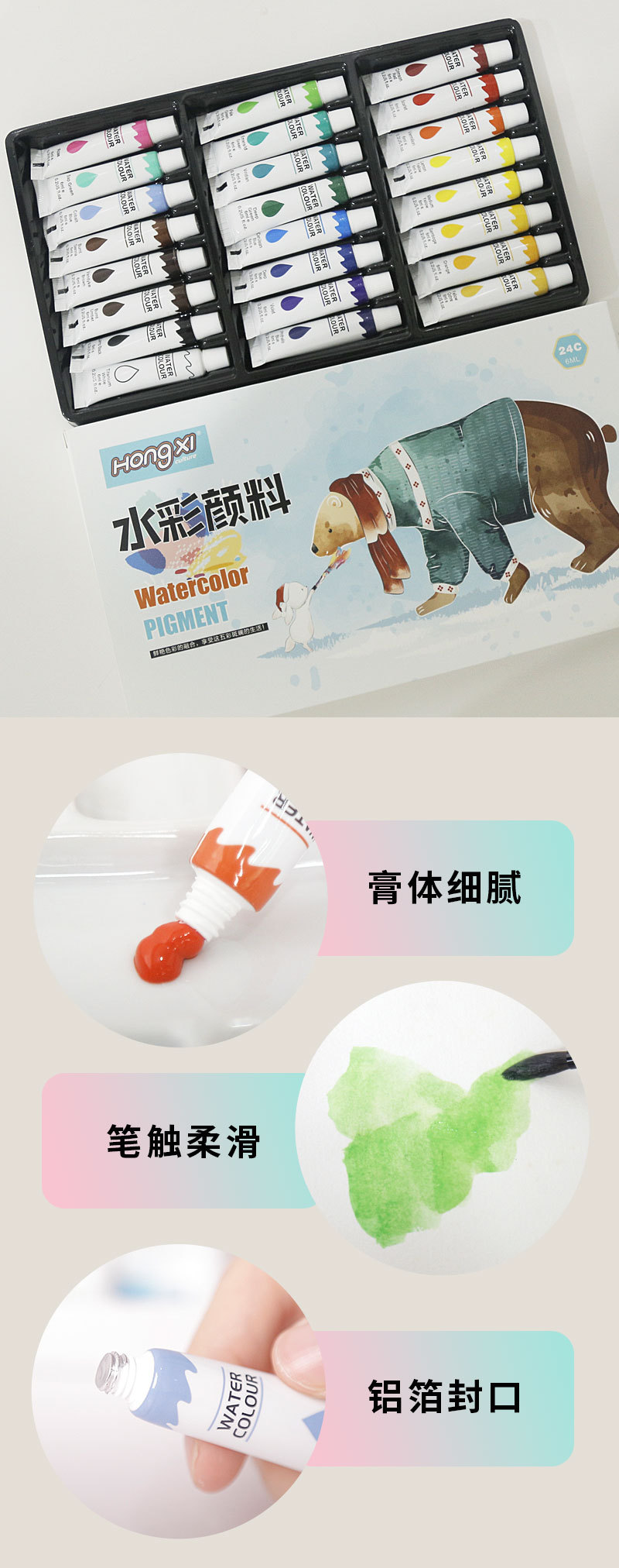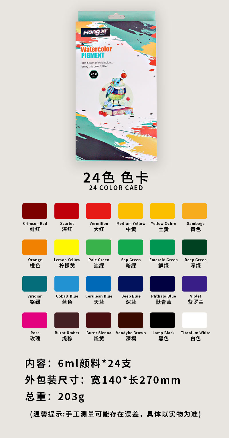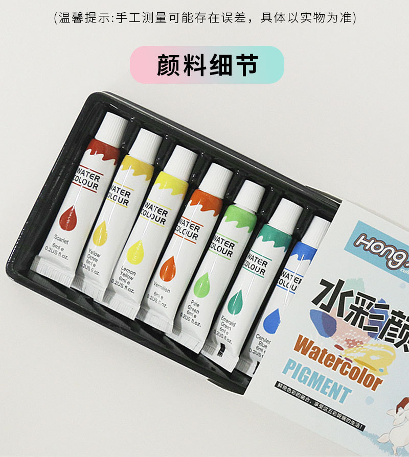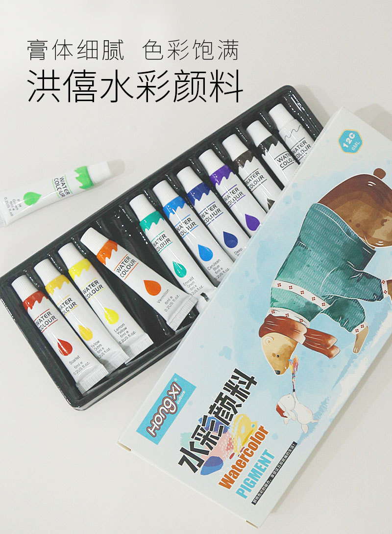 Акварельные краски, набор 12 цветов, 24 цвета, гуашевая краска, 6 мл тюбик, моющиеся, для детей, начальная живопись