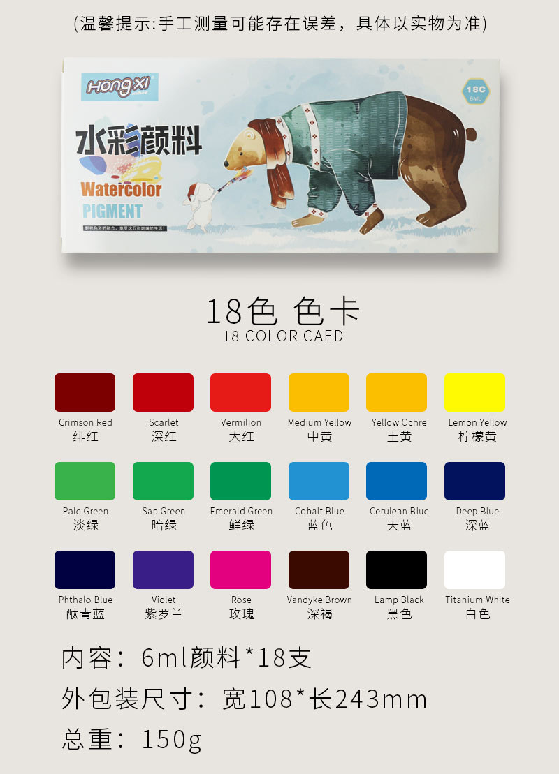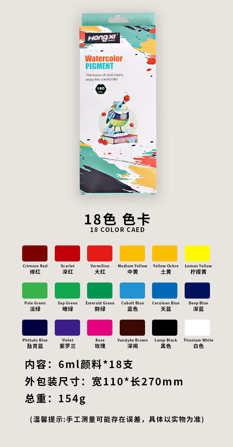 ![]() | 6ml*18 colors (chinese pull-out box) | ¥3.75 / ≈ 46 ₽ | 8884 | 6030752823181 | |