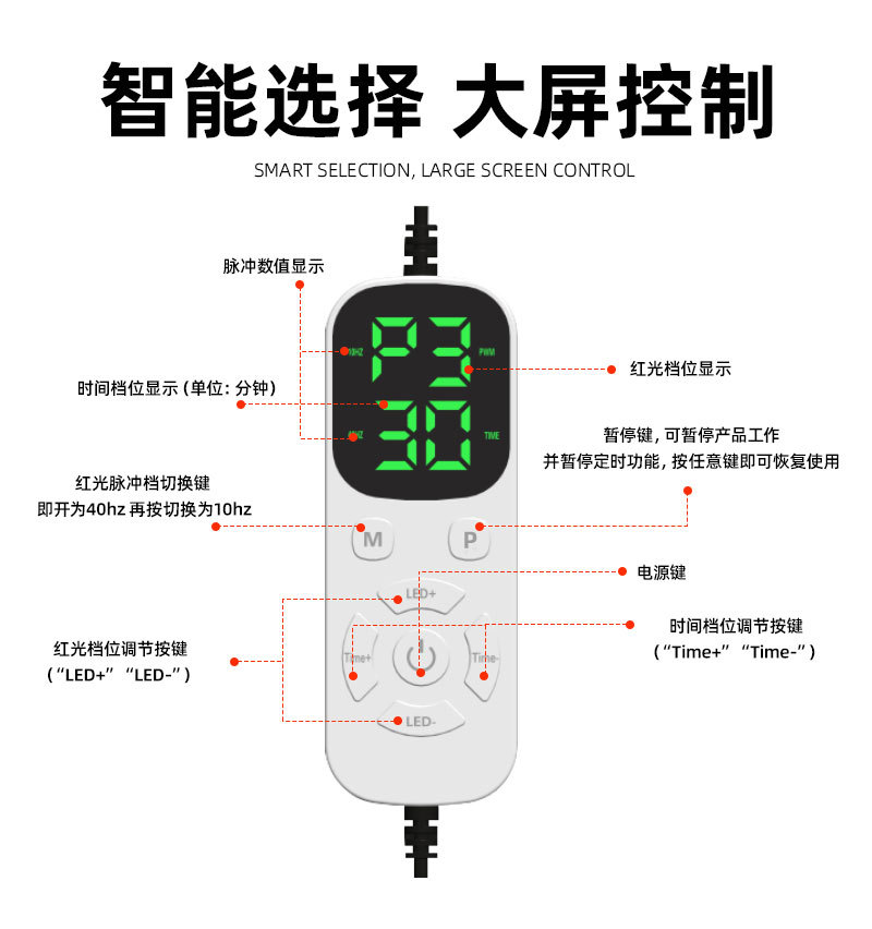 Передача Five levels of red light, two levels of pulse, nine levels of timing