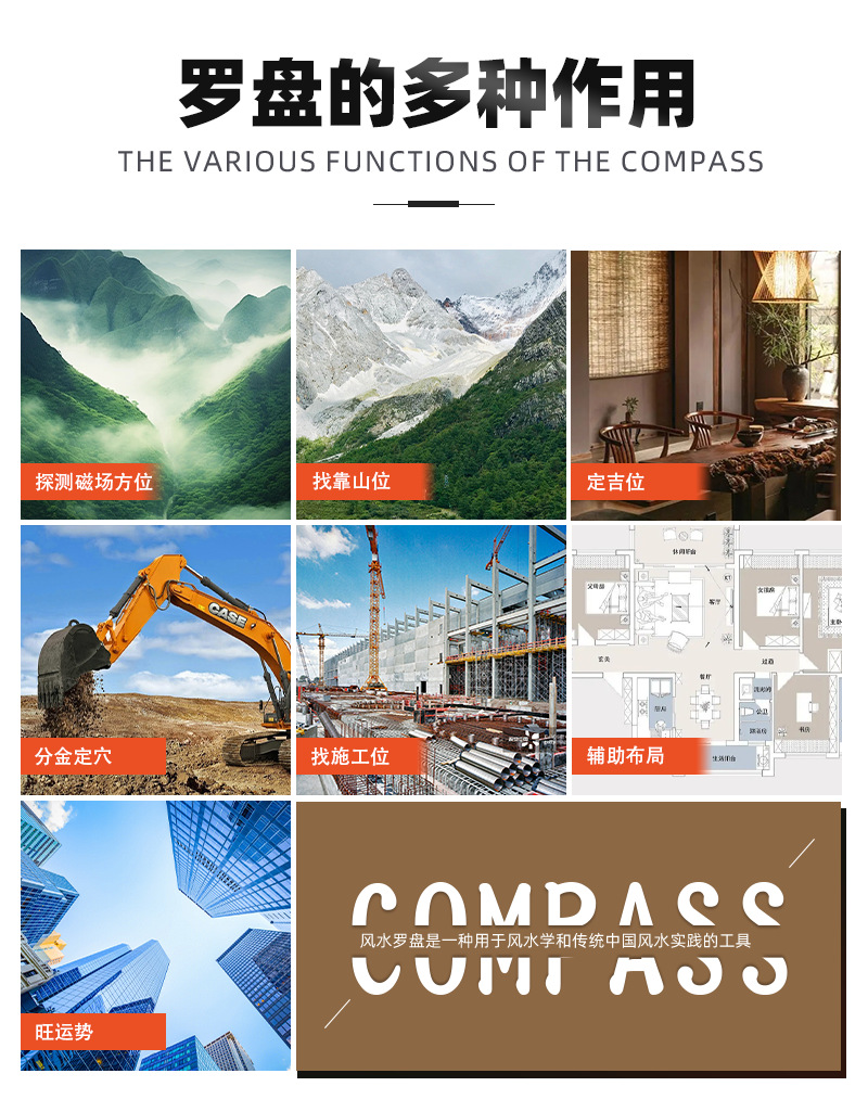 Оптовый магнитный компас для фэн-шуй, прозрачный компас для планировки дома