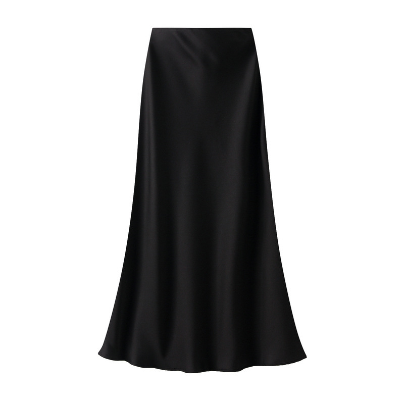 Юбка из драпированной ацетатной сатиновой ткани, женская, летняя, средней длины, с хвостом, высокая талия, A-образная
