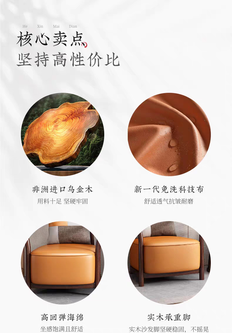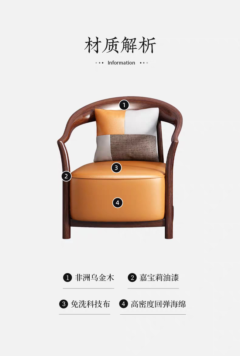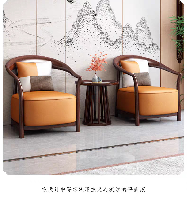 Новый китайский стиль, кресло из черного дерева, комплект из трех предметов, большой диван из массива дерева для гостиной, балконное кресло, приемное кресло