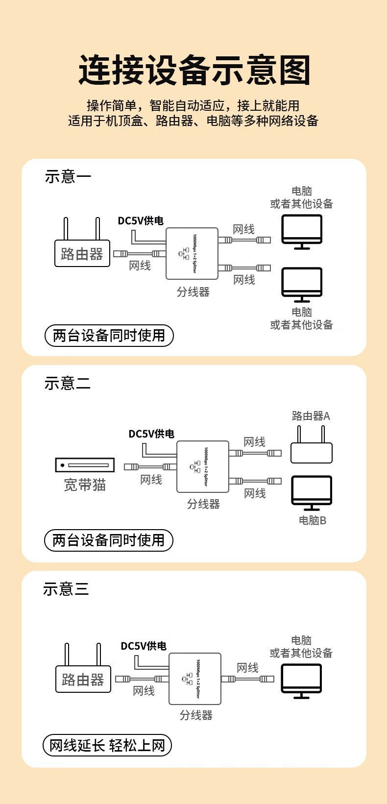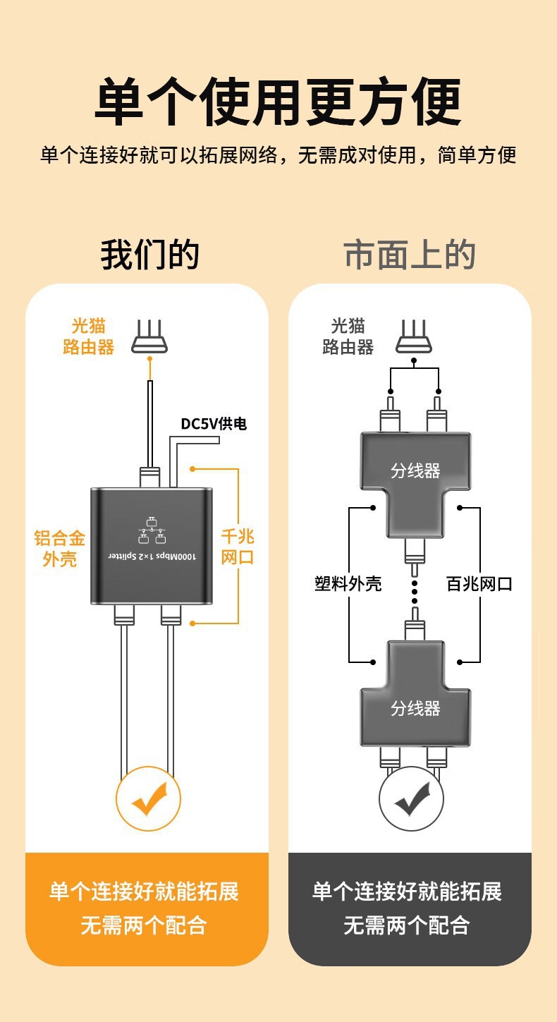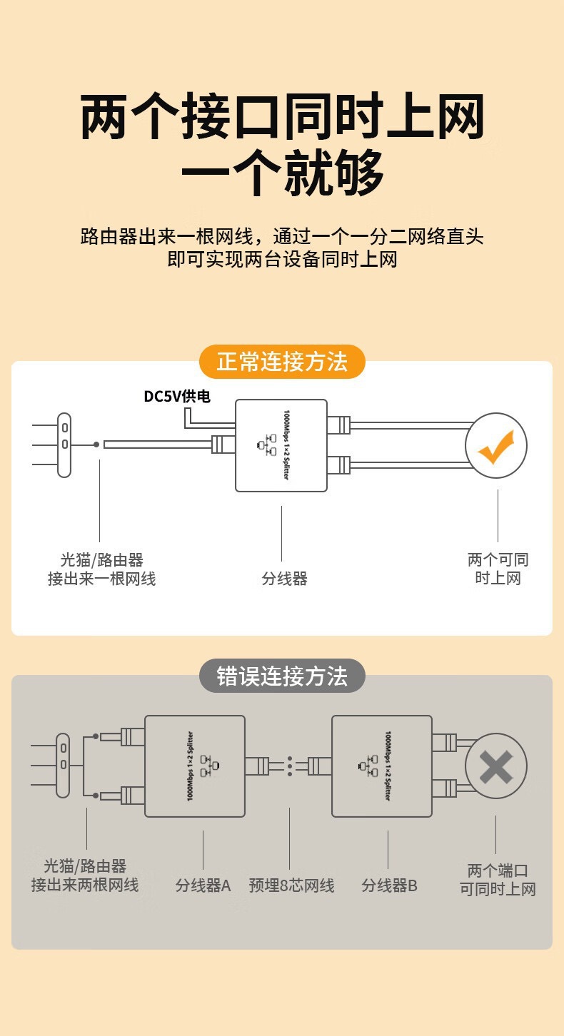 Адаптер гигабитного разветвителя One-To-Two RJ45 1 в 2