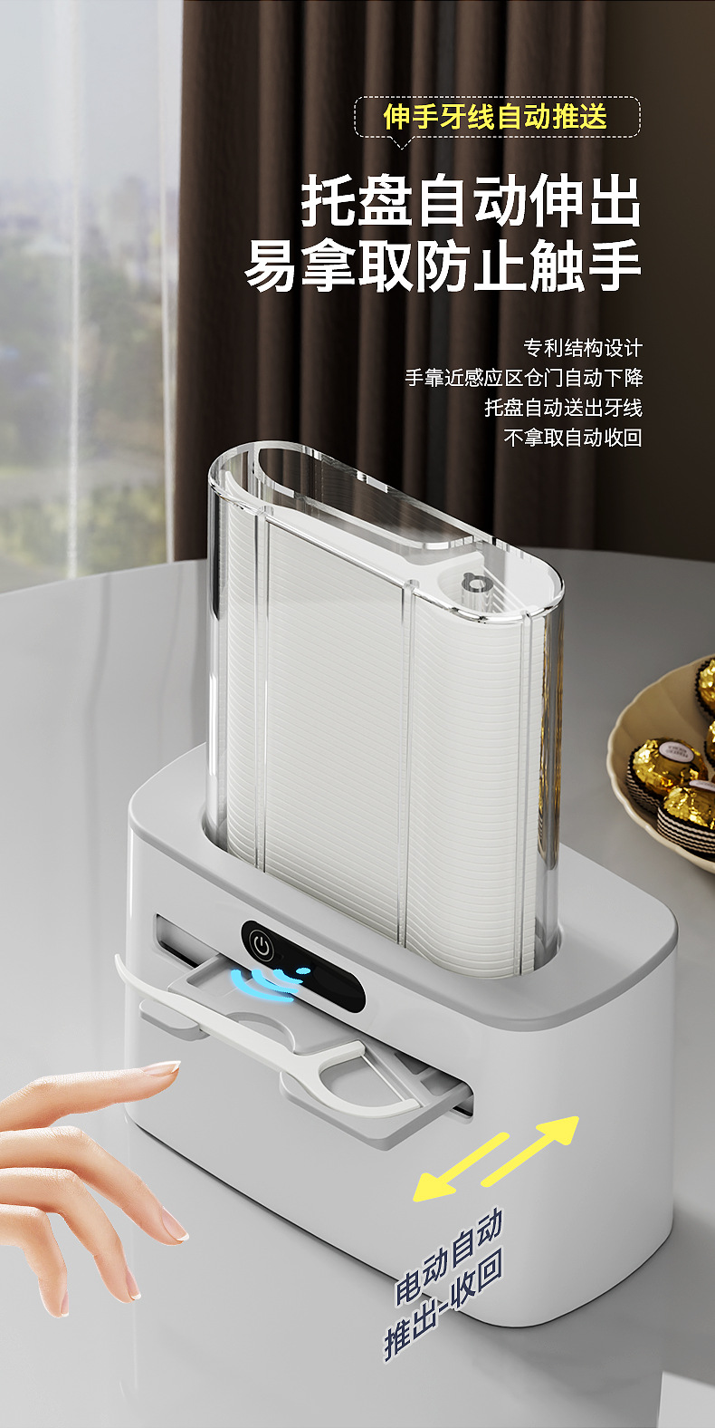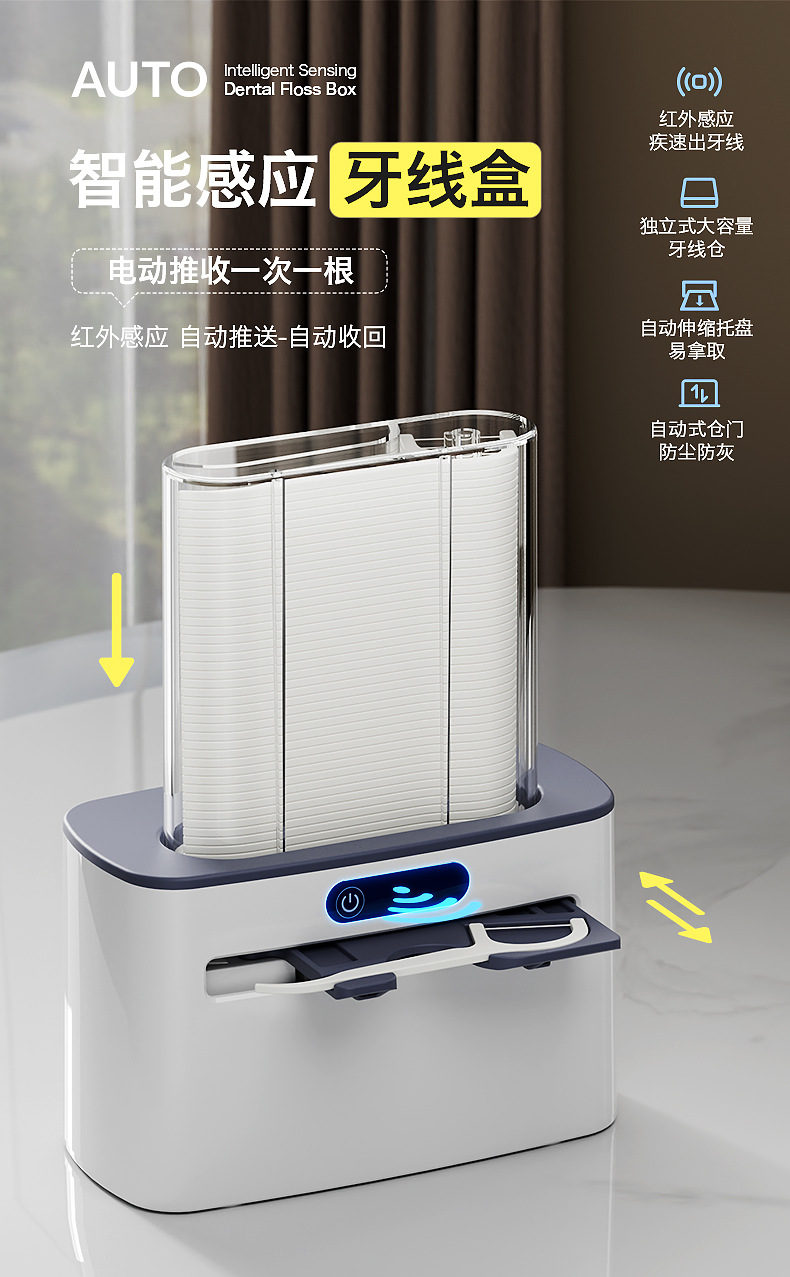Интеллектуальная сенсорная коробка для зубной нити, полностью автоматический выдвижной контейнер для хранения зубной нити, портативная для дома, отелей и ресторанов