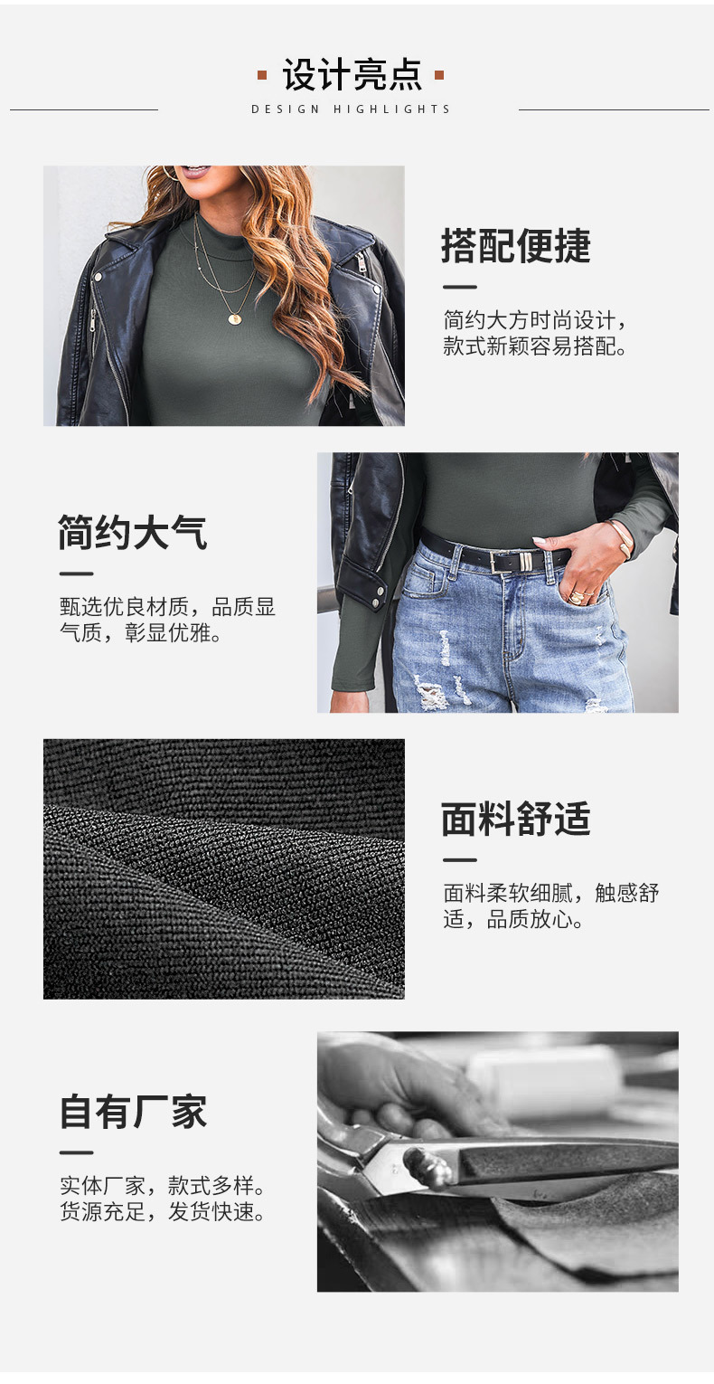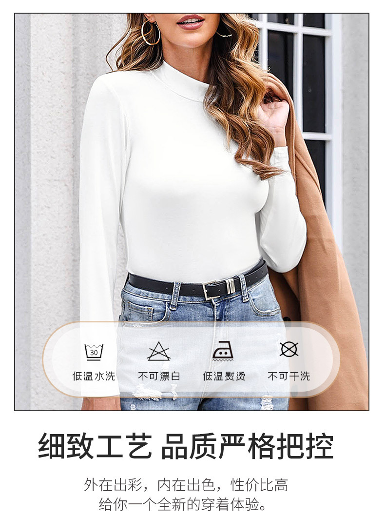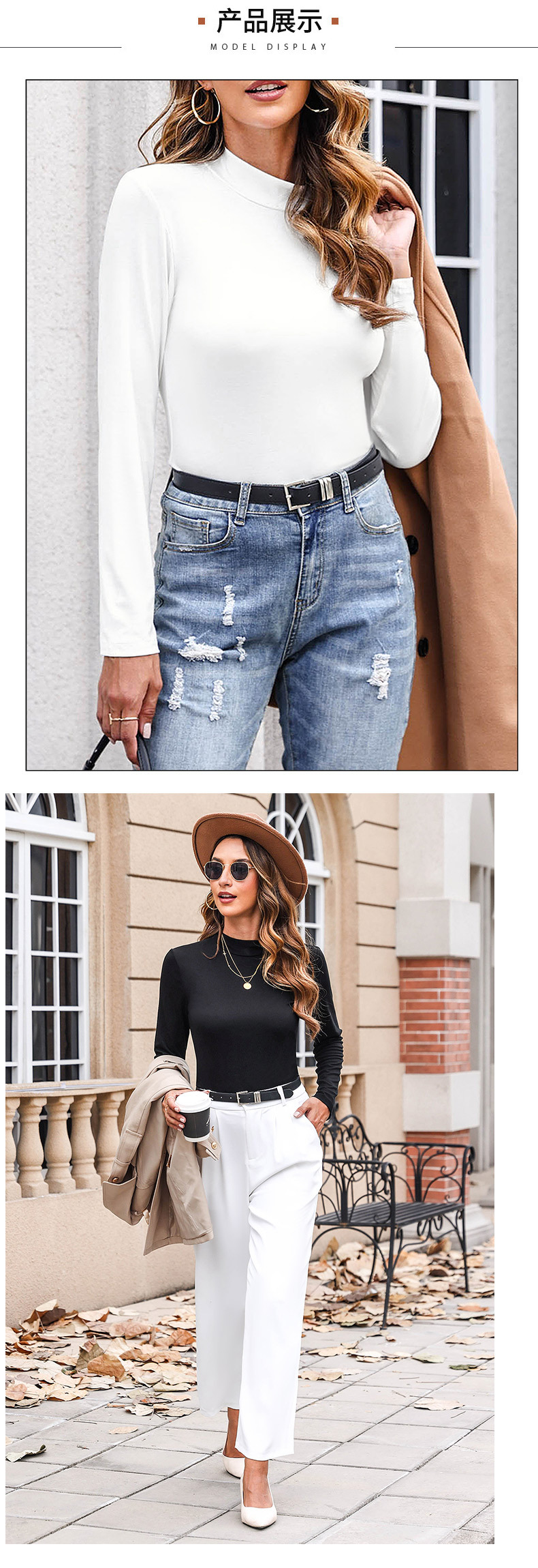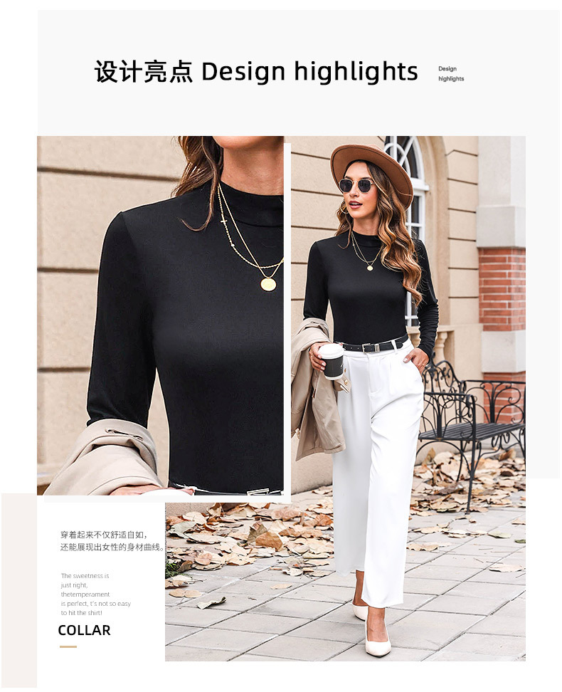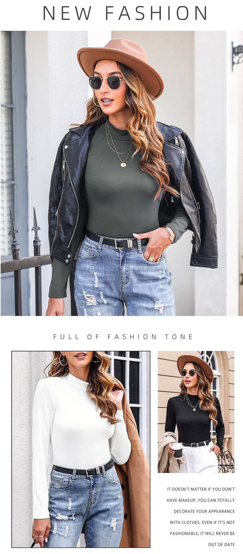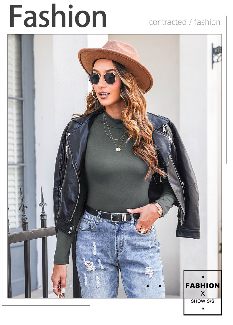 Рубашка с высоким воротником для женщин, длинный рукав, однотонная, весна-осень, корейский стиль, тонкие облегающие топы