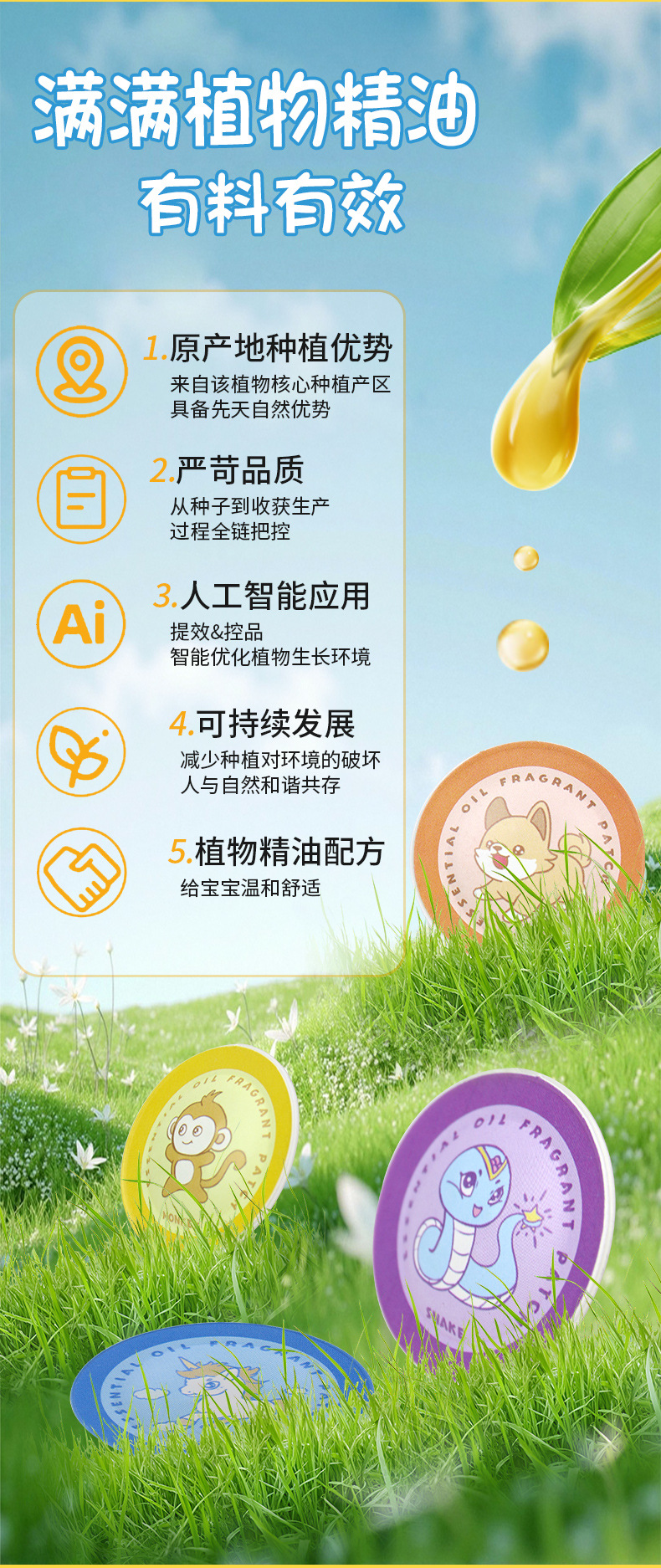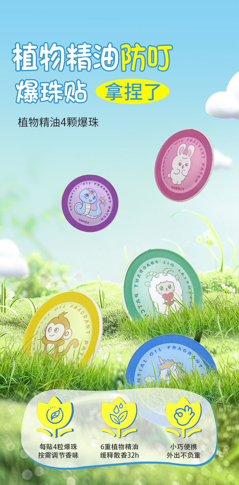 Наклейки с эфирным маслом для растений, наклейки с эфирным маслом для детей и взрослых, наружные мультяшные наклейки, оптовая продажа