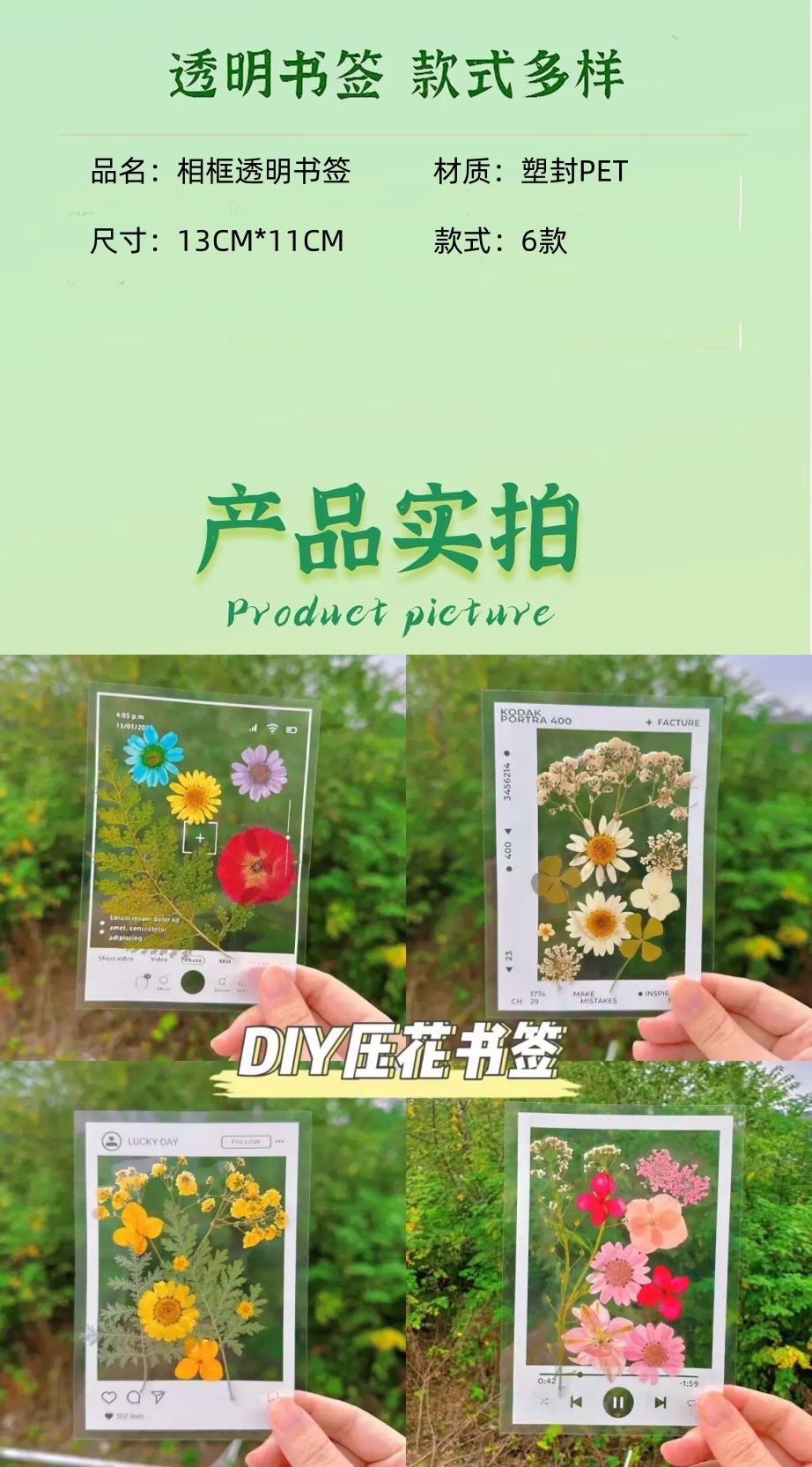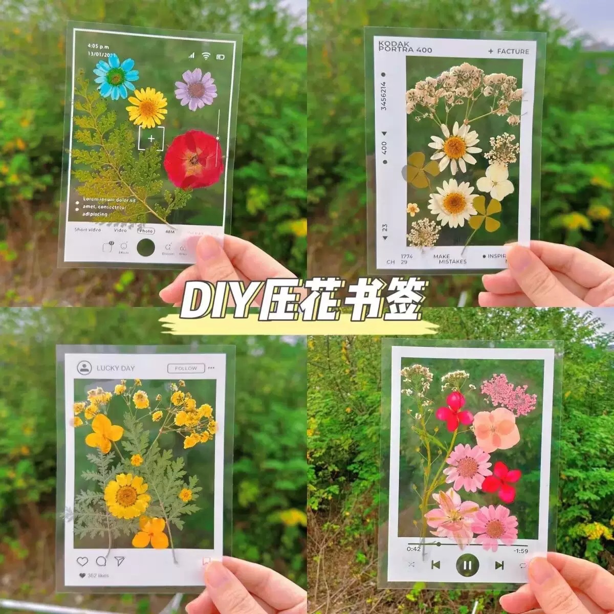 Креативная закладка с сушеными цветами, ручная работа, прозрачная маленькая бутылка, тисненая наклейка, пакет, самодельный клип для образцов растений