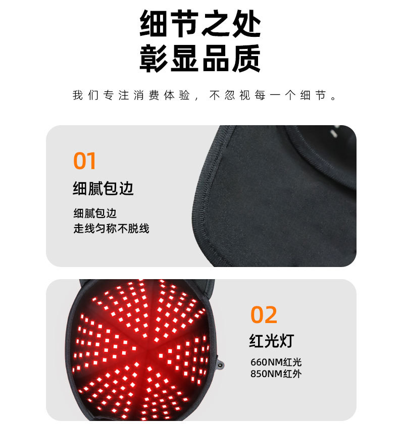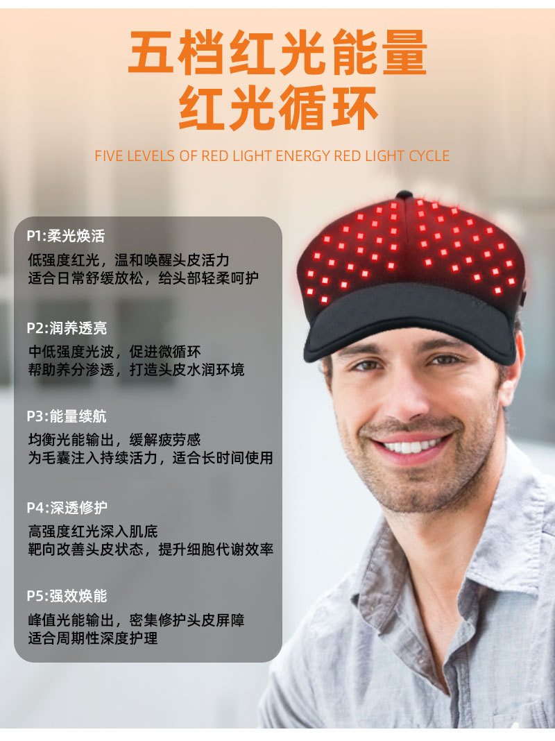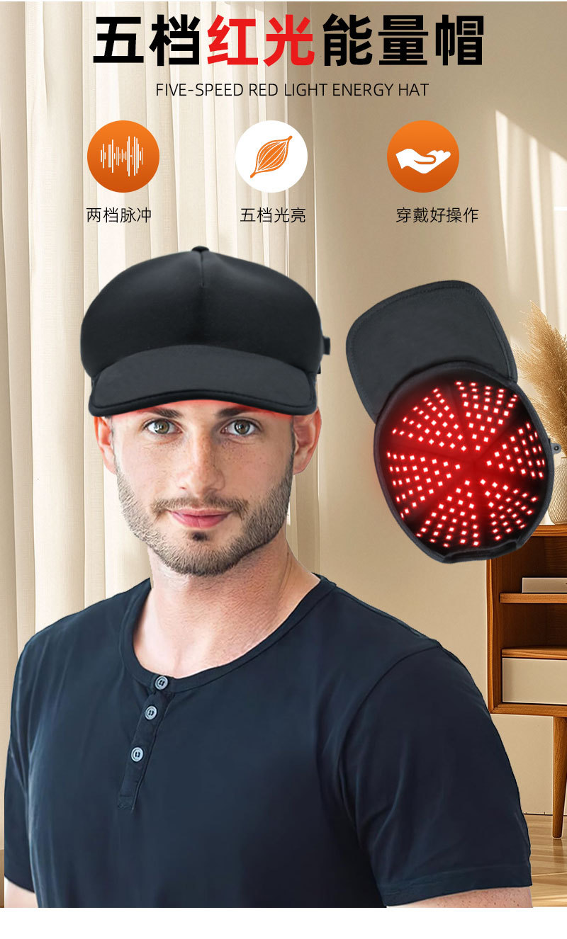 亚马逊热销红光护发帽子预防脱发双波段可定时24W头部红外光帽子