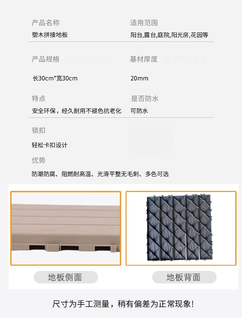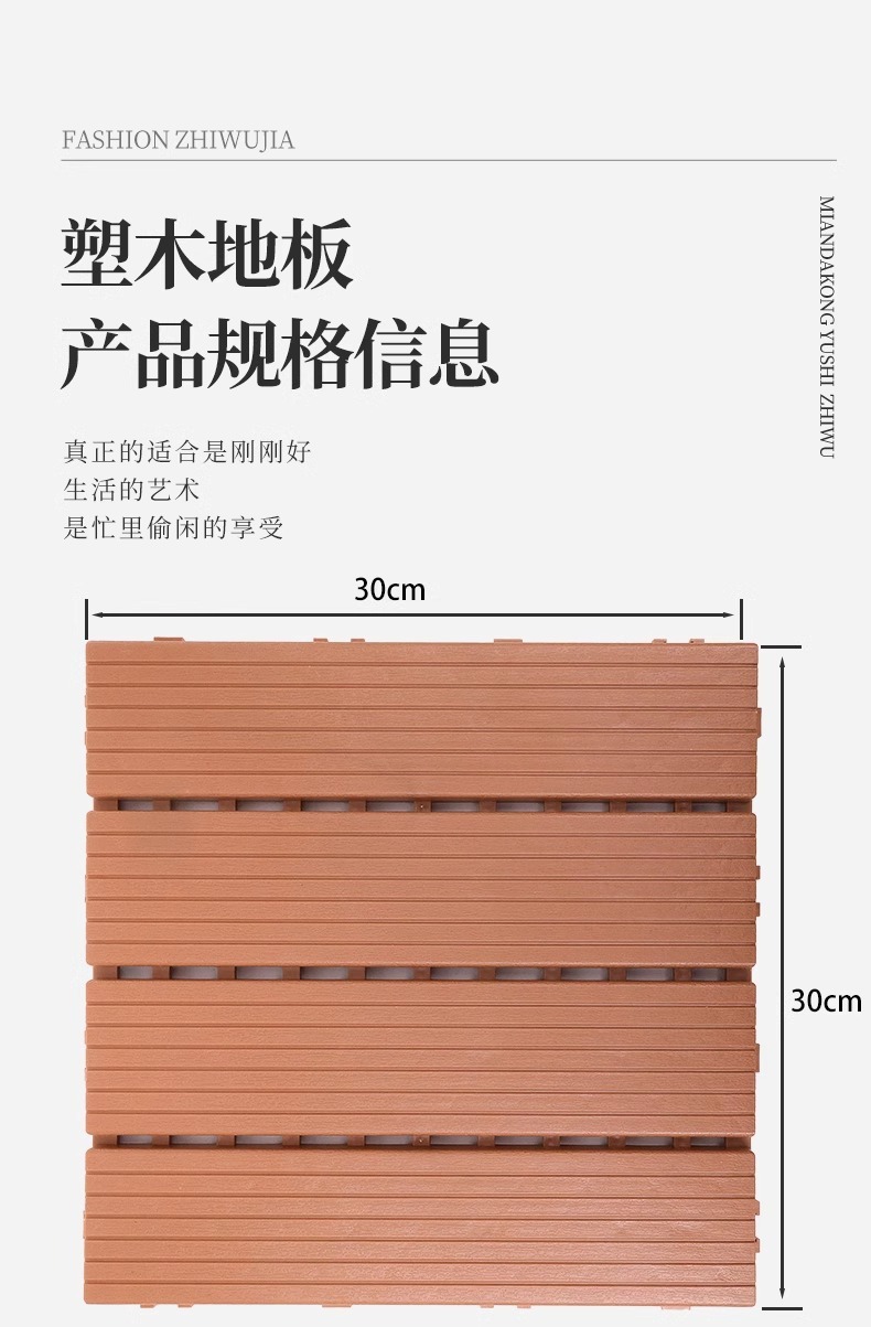 ![]() | Eco-friendly wood-plastic composite interlocking deck tiles - tangerine | 30*30*2cm/piece [single piece] | ¥3.5 / ≈ 43 ₽ | 949646 | 6112746990820 | |