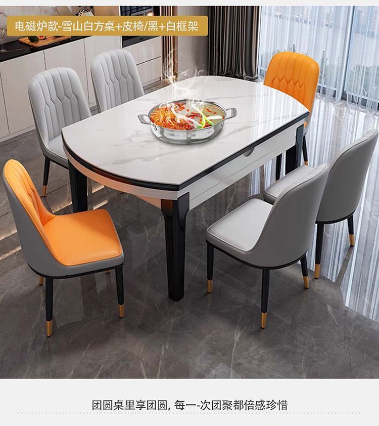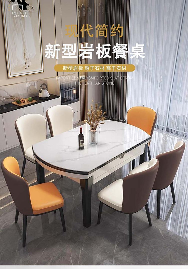Обеденный стол из сланца и стулья, раскладной овальный стол с индукционной плитой для небольших квартир