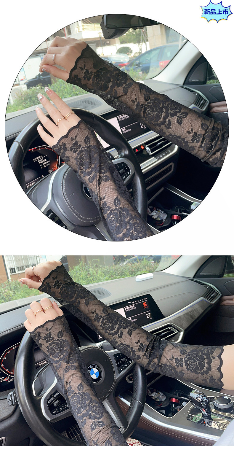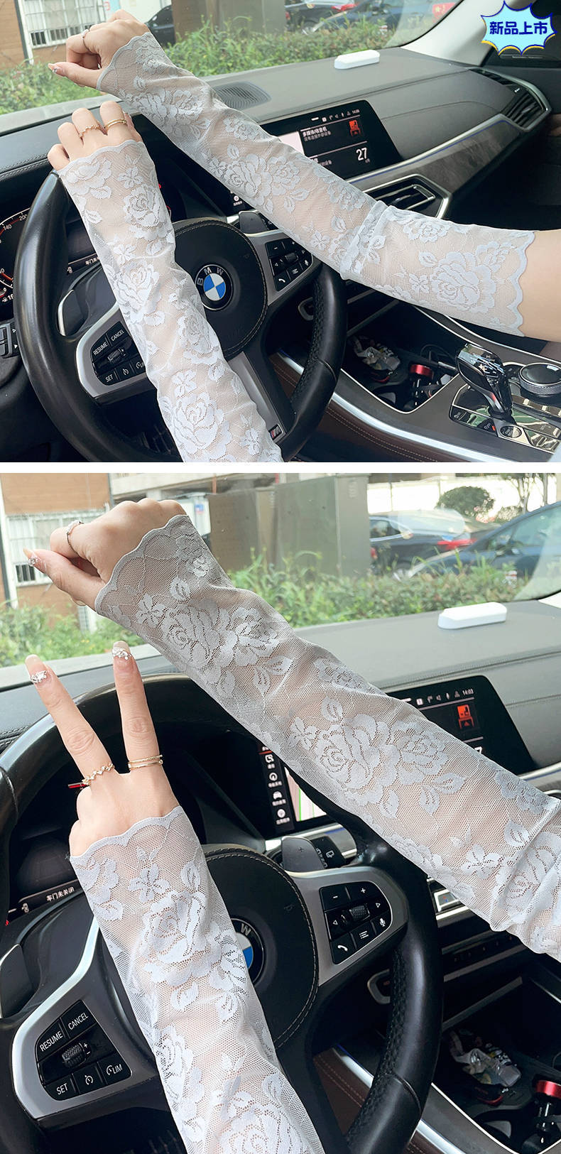 Кружевная защита от солнца для вождения на улице летом Summer outdoor driving lace sun protection sleeves arm sleeves women's thin breathable scar tattoo uv protection