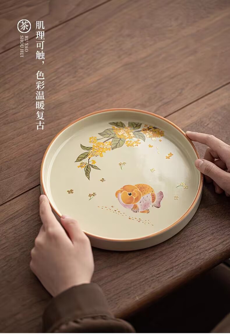 Креативный маленький керамический поднос с круглым подносом для хранения чайных листьев