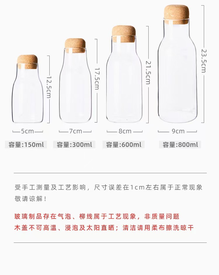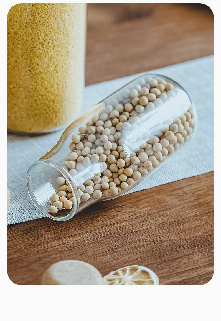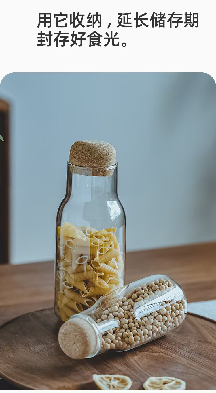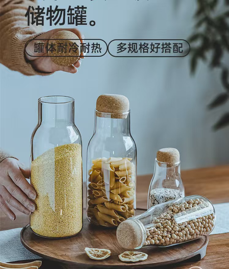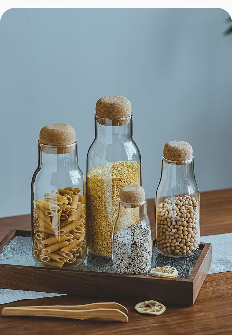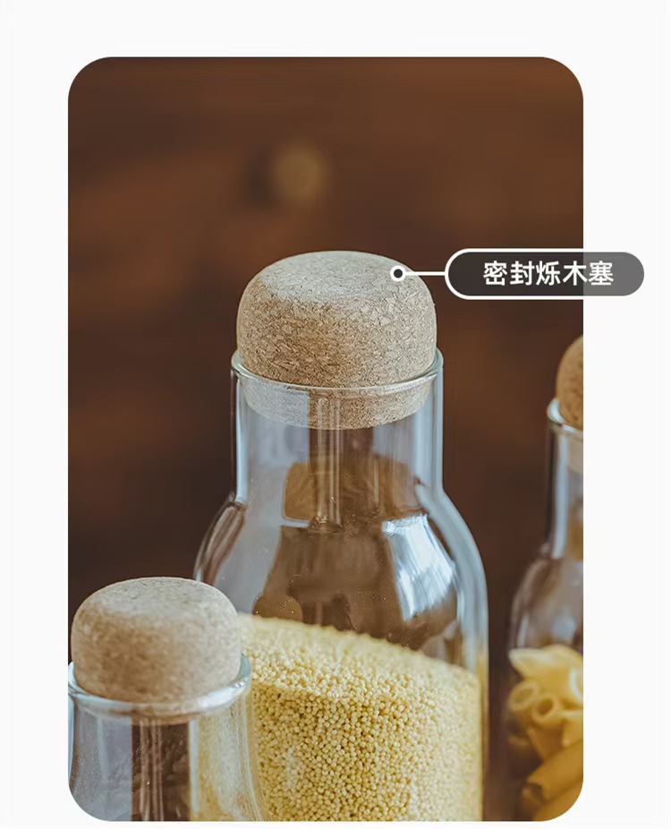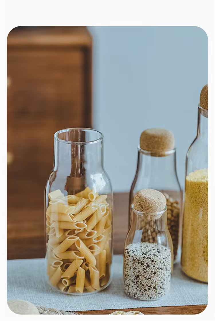 Оптовая прозрачная банка из боросиликатного стекла для хранения закусок с пробковой крышкой, герметичная банка для круп и конфет