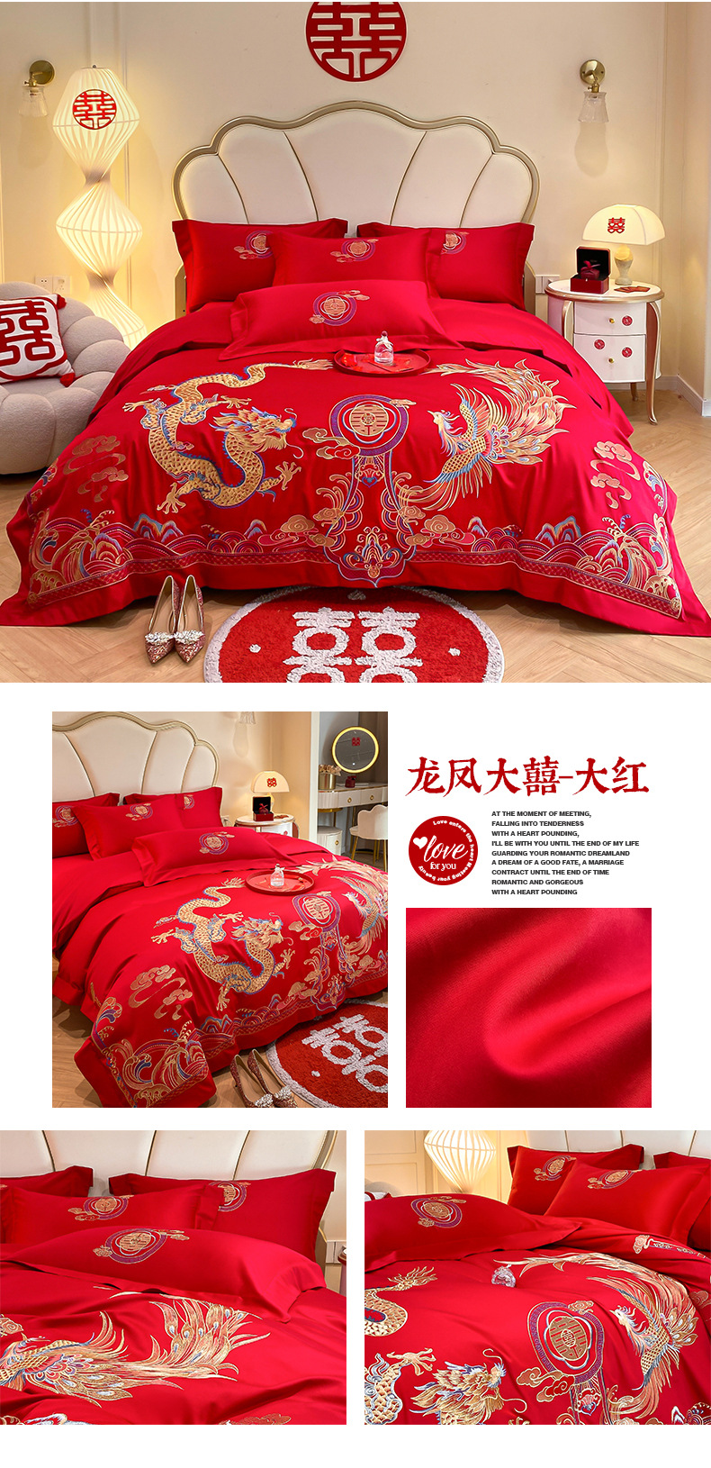 Новый китайский стиль, свадебный комплект из четырех предметов с вышивкой дракона и феникса, красное постельное белье