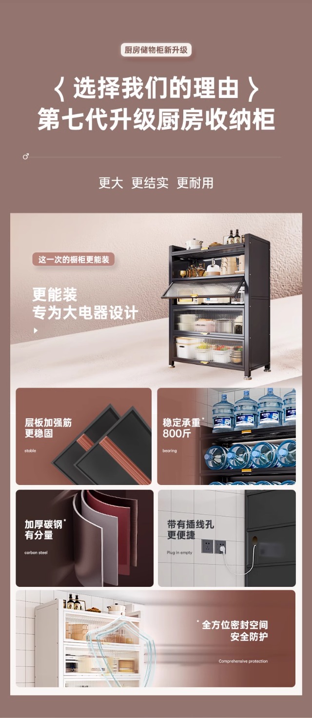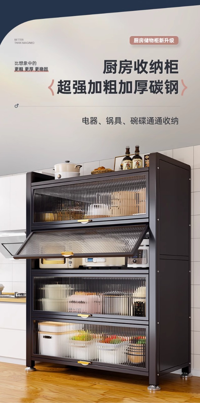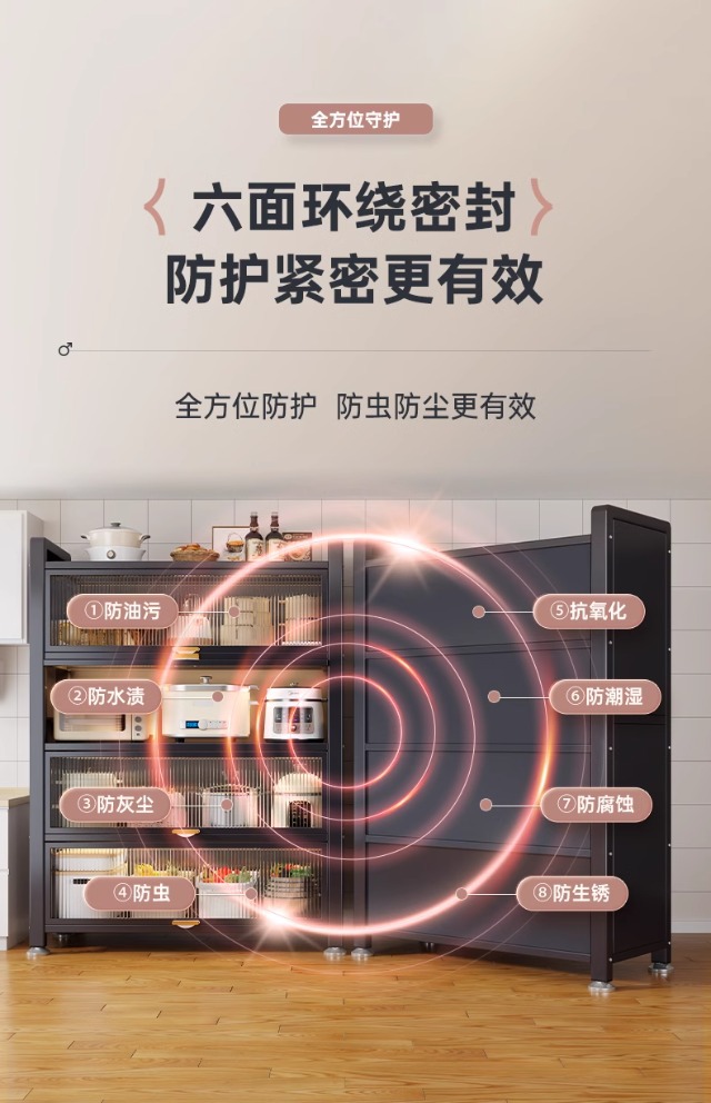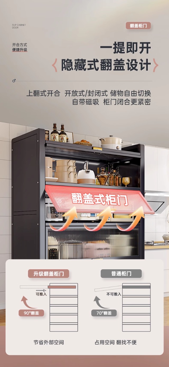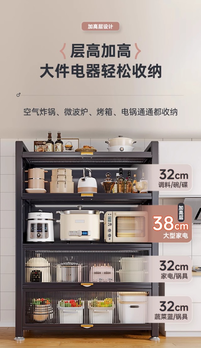 Кухонный шкаф для хранения Многоуровневый пылезащитный шкаф Микроволновая печь Многофункциональный шкаф
