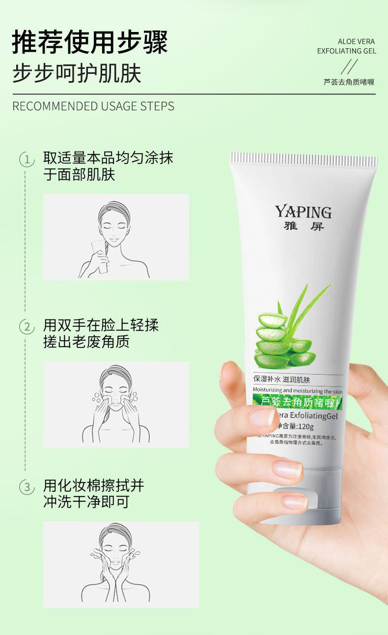 Гель для отшелушивания с алоэ вера Yapin, отшелушивающий, очищающий поры, для глубокого очищения кожи лица