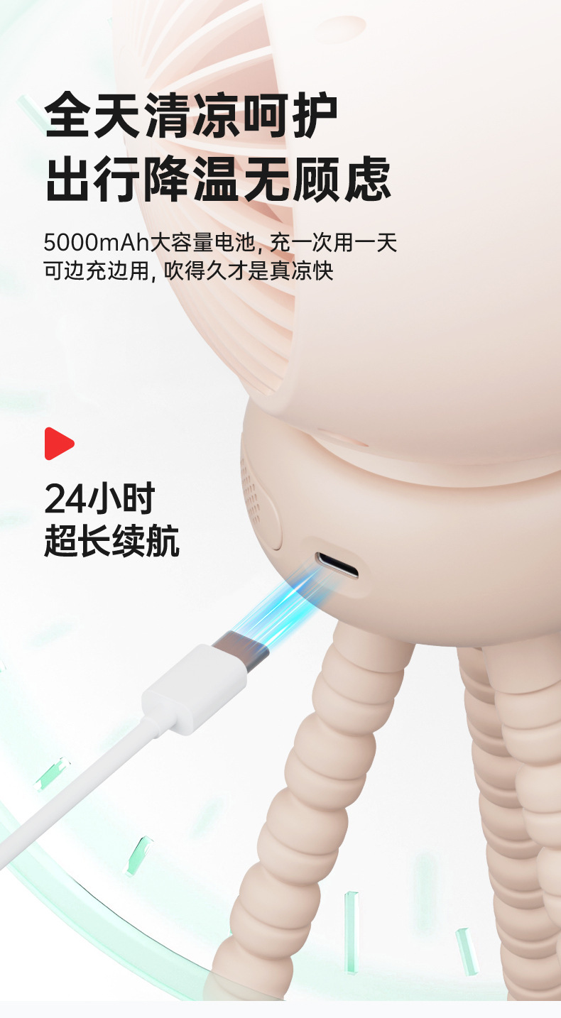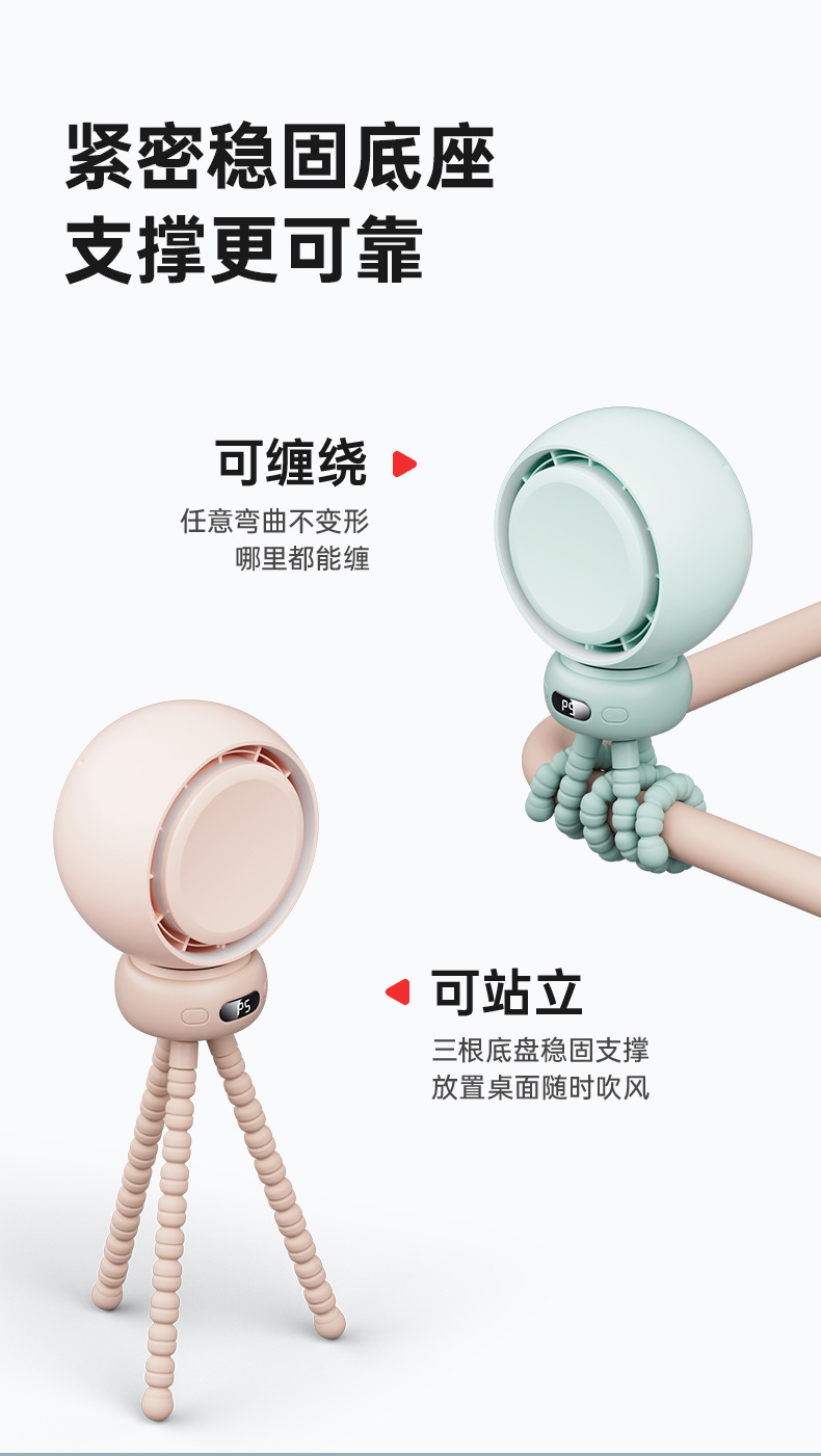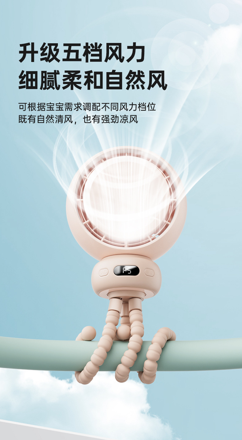 Новый вентилятор Octopus, мощный, для коляски, настольный, перезаряжаемый, для циркуляции воздуха