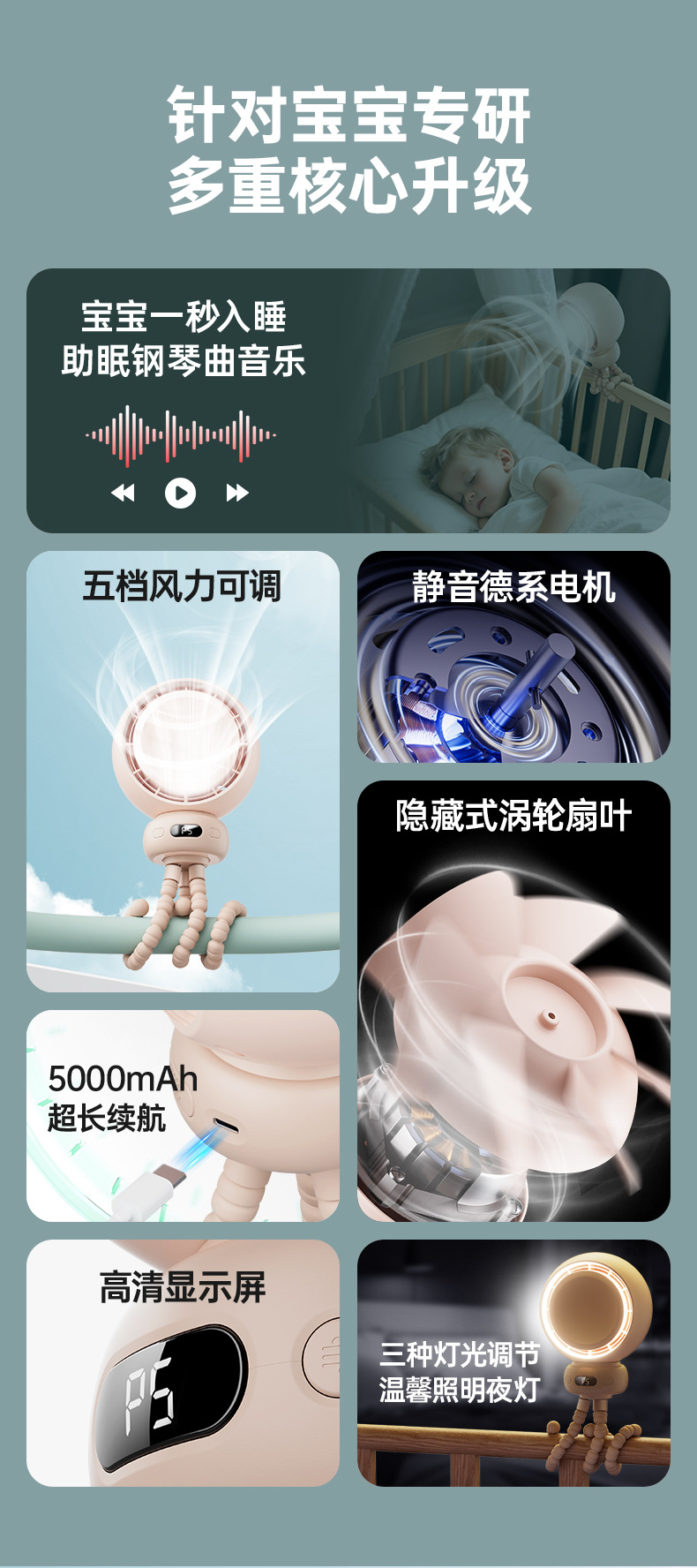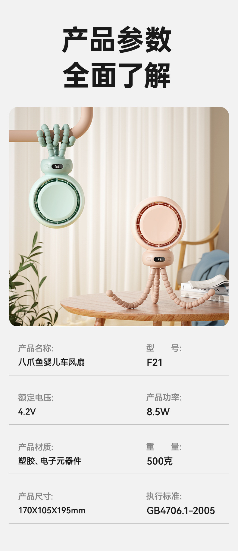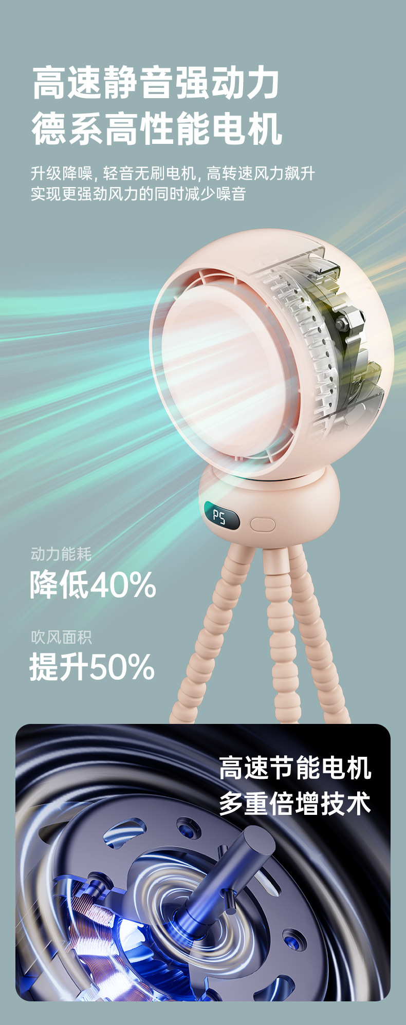 Новый вентилятор Octopus, мощный, для коляски, настольный, перезаряжаемый, для циркуляции воздуха