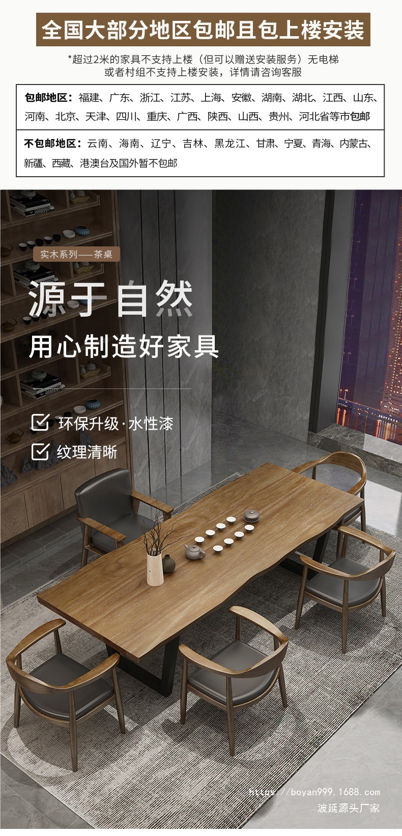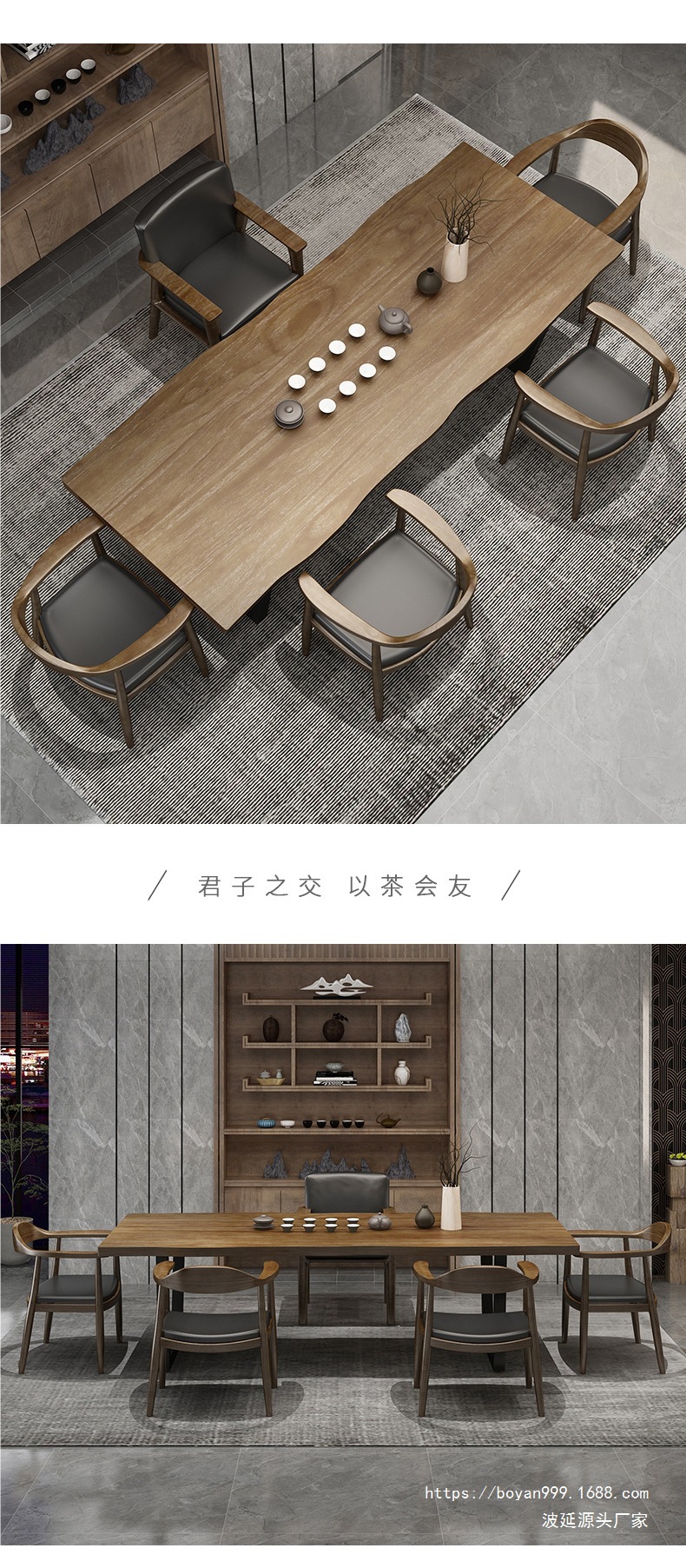 Новый китайский стиль, чайный стол из массива дерева и стулья, современный простой скандинавский кофейный столик, офисный чайный стол, большой стол