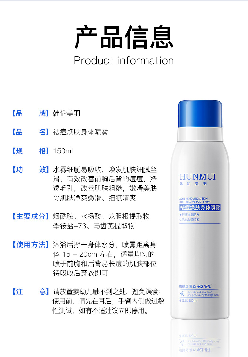 Han Lun Meiyu спрей для тела против акне, с салициловой кислотой