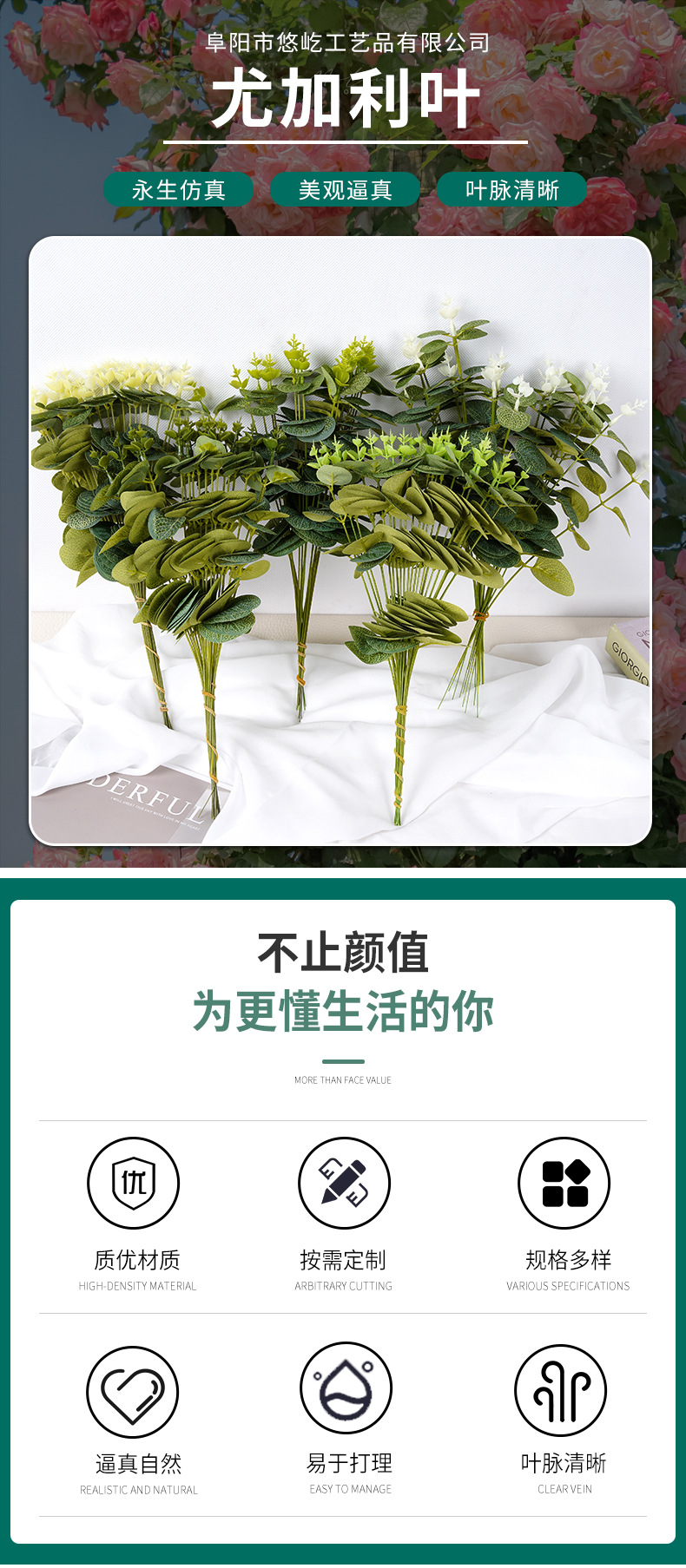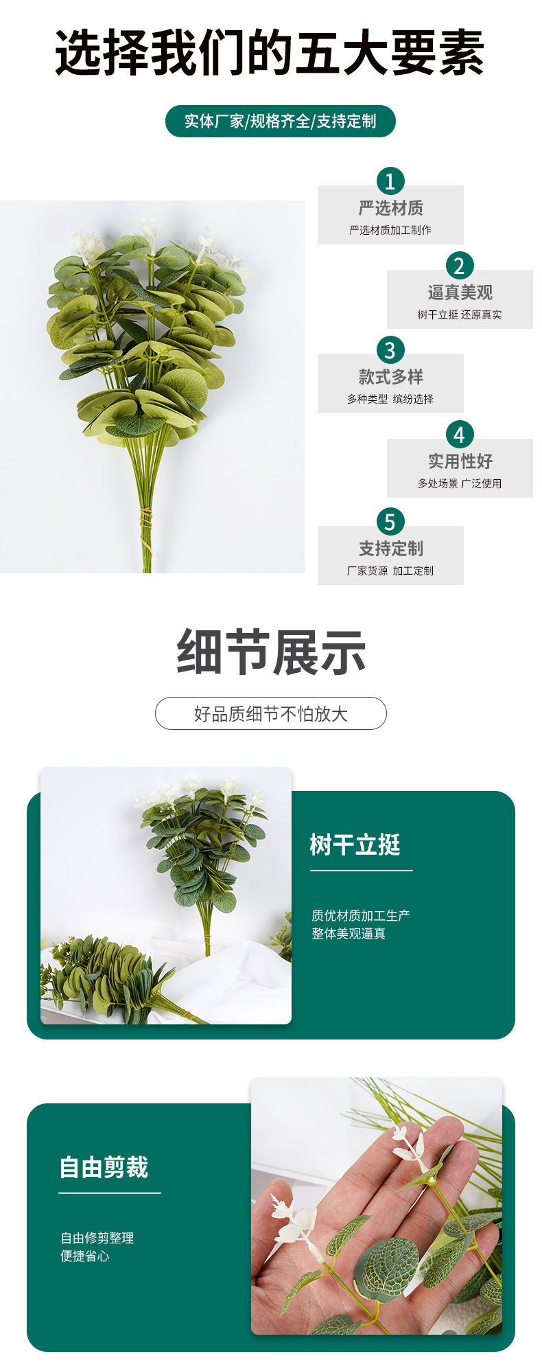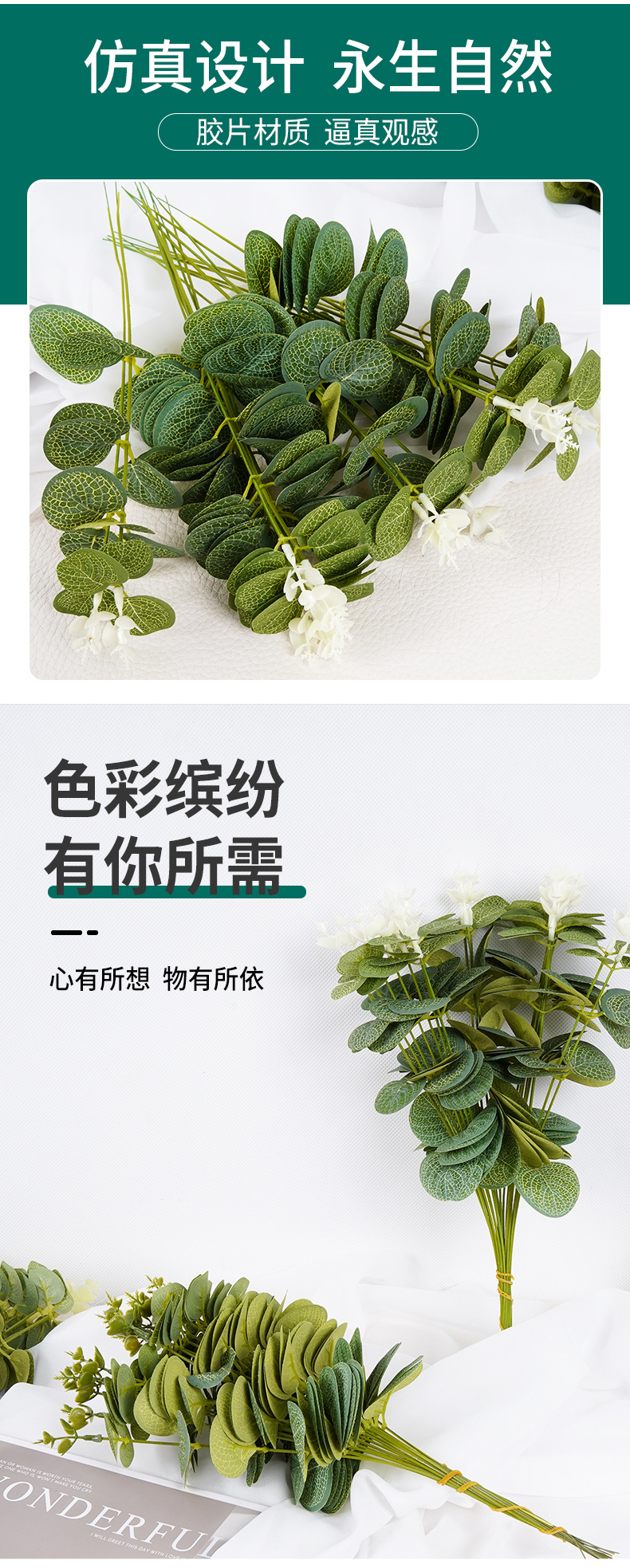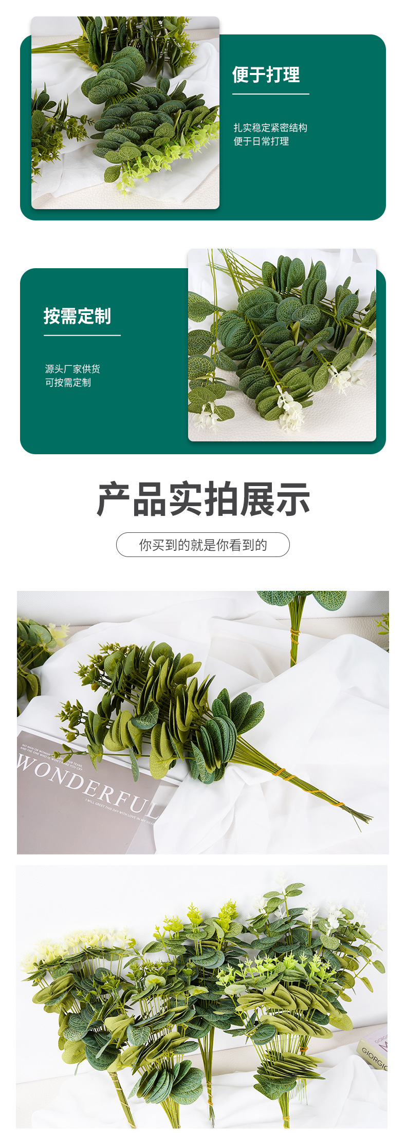 Кросс-бордовая зеленая растительная симуляция высококачественного эвкалиптового листа Симулированный цветок Зеленый лист Реквизиты для свадебной фотостудии