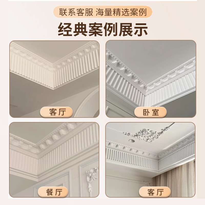 Потолочный молдинг в французском стиле с карнизом, гипсовой линией, головой тигра, комбинацией пианино, линией стиральной доски, потолок