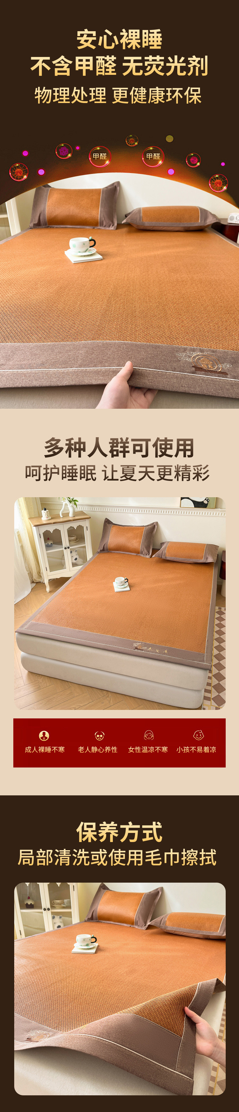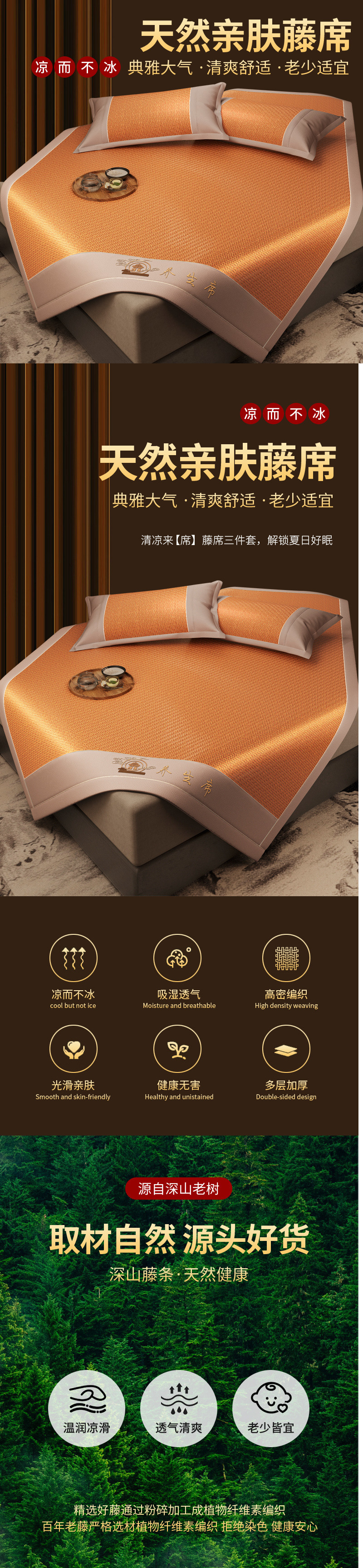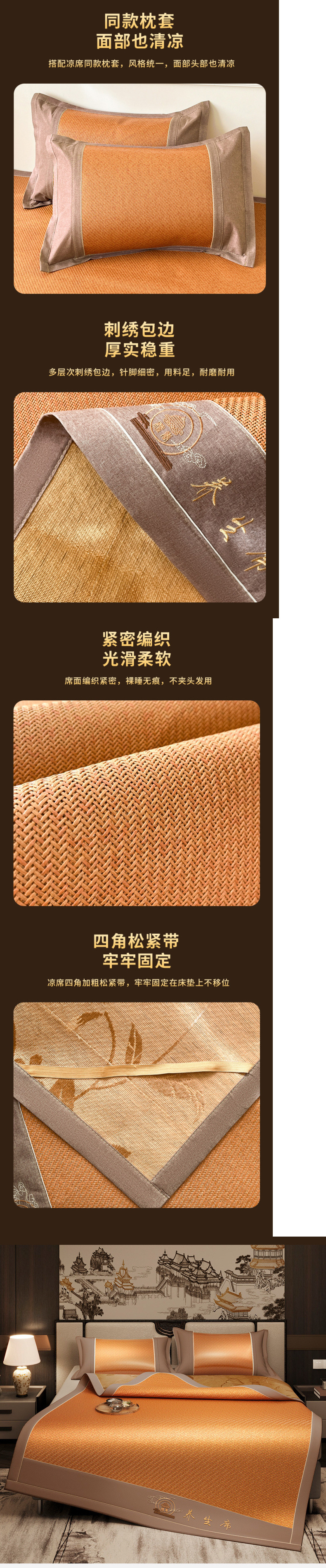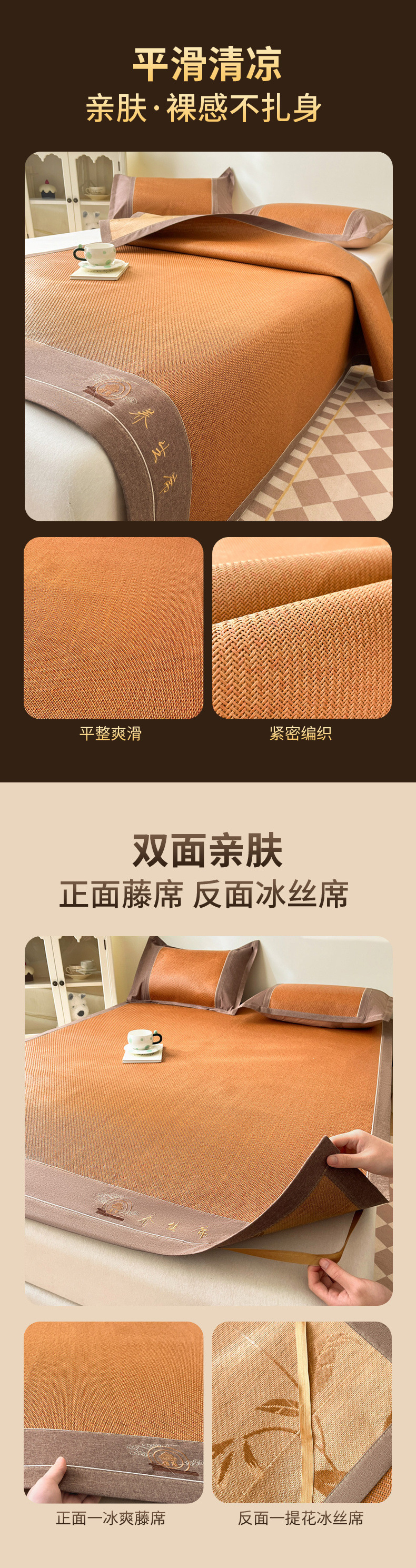凉席夏天2025新款高端藤席草席家用夏季折叠冰丝席子单人宿舍竹席