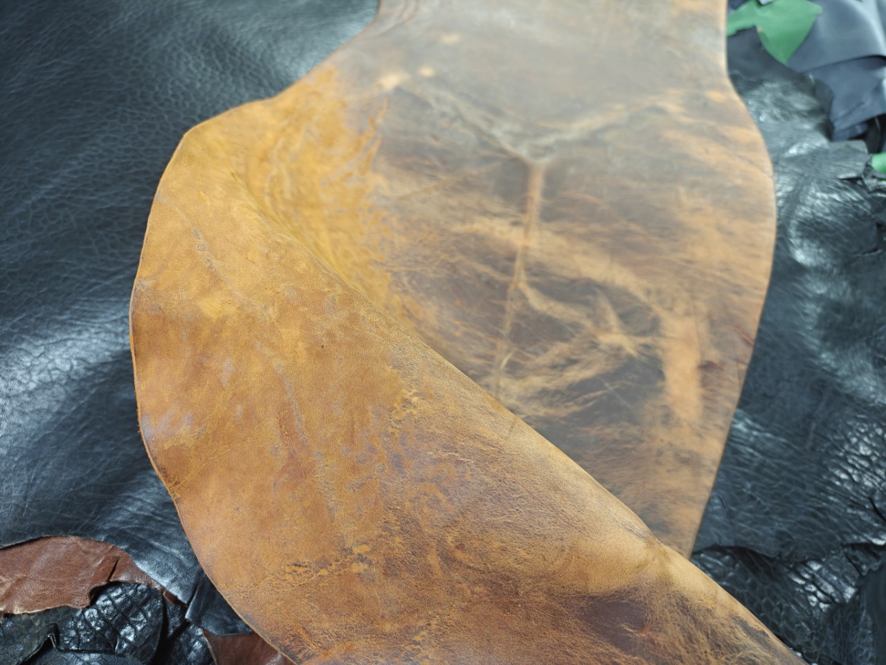 Кожа лошади, тяжелое масло, восковая обесцвеченность, ретро эффект, 2-3.5мм, неравномерная толщина, ширина 40-50см, длина 110-120см