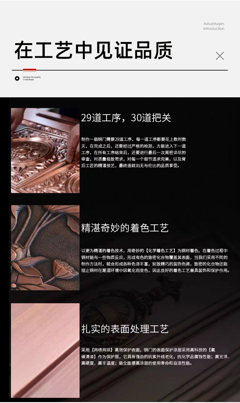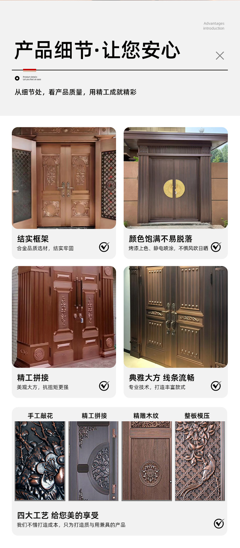 Материал Door panel: copper plate, stainless steel copper-plated plate, skeleton: galvanized pipe, stainless steel pipe, hot-dip galvanized pipe